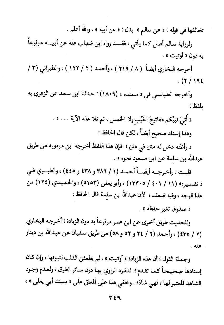 ولرواية سالم أصل كما يأتي، فقد رواه ابن شهاب عنه عن أبيه مرفوعاً به دون "أوتيت".