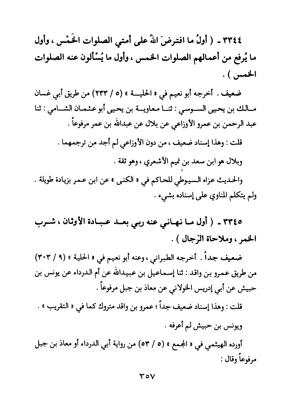 3344 - (أول ما افترض الله على أمتي الصلوات الخمس، وأول ما يرفع من أعمالهم الصلوات الخمس، وأول ما يسألون عنه الصلوات الخمس) .