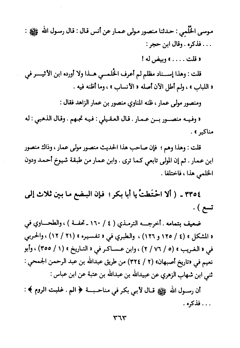 قلت: وهذا وهم؛ فإن صاحب هذا الحديث منصور مولى عمار، وذاك منصور ابن عمار. ثم إن المولى تابعي كما ترى. وابن عمار من طبقة شيوخ أحمد ودون الخلمي هذا، فاختلفا.