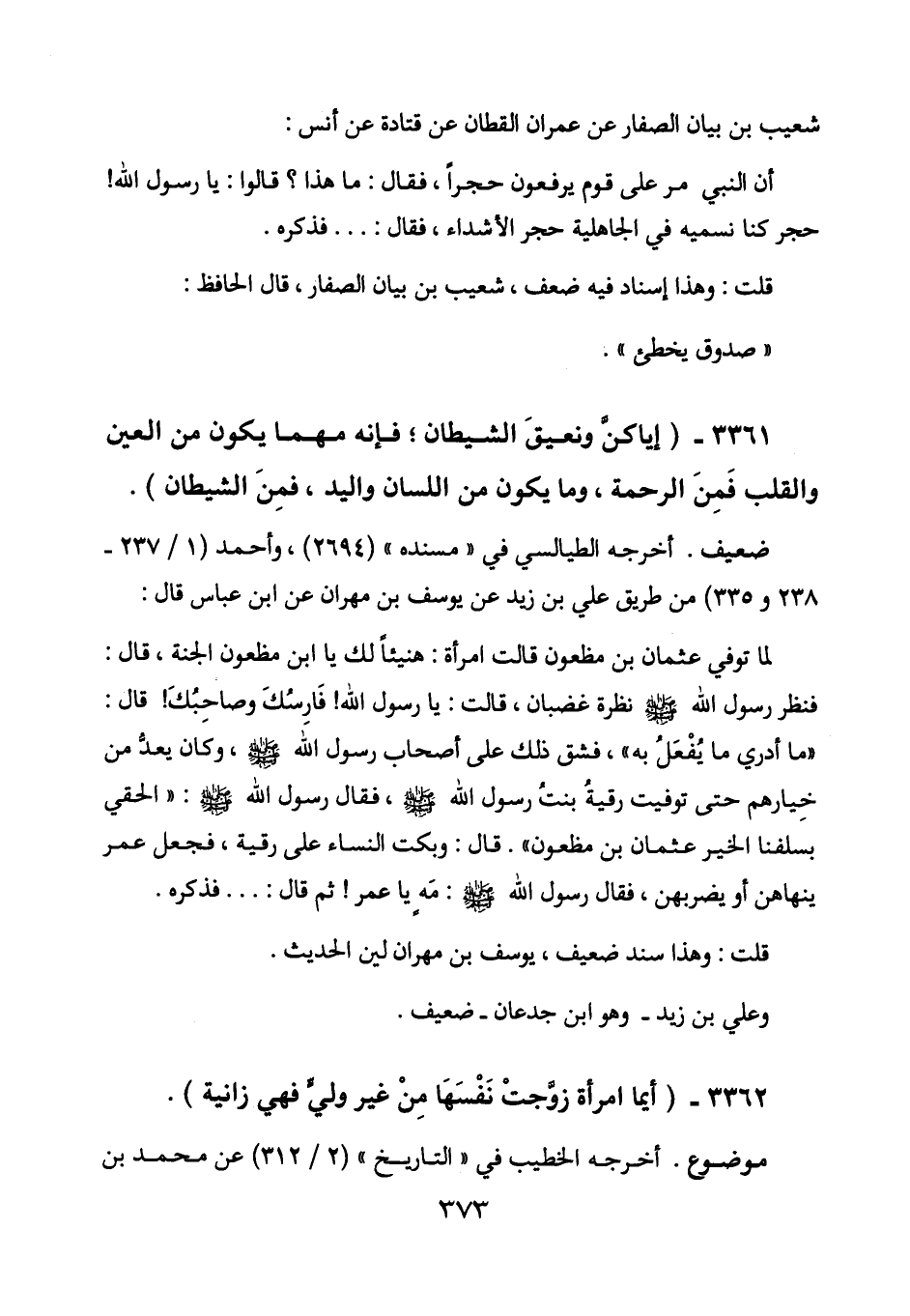 3362 - (أيما امرأة زوجت نفسها من غير ولي فهي زانية) .