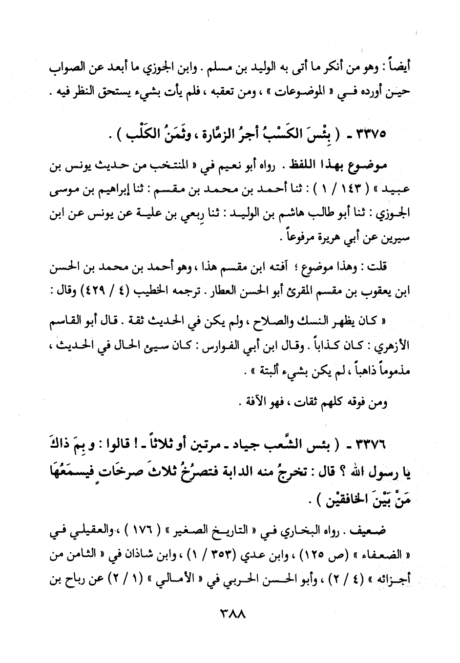3376 - (بئس الشعب جياد - مرتين أو ثلاثاً -! قالوا: وبم ذاك يا رسول الله؟ قال: تخرج منه الدابة فتصرخ ثلاث صرخات فيسمعها من بين الخافقين) .