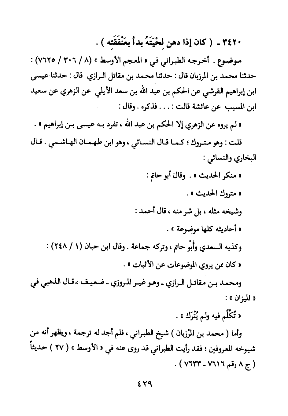 3420 - (كان إذا دهن لحيته بدأ بعنفقته) .
