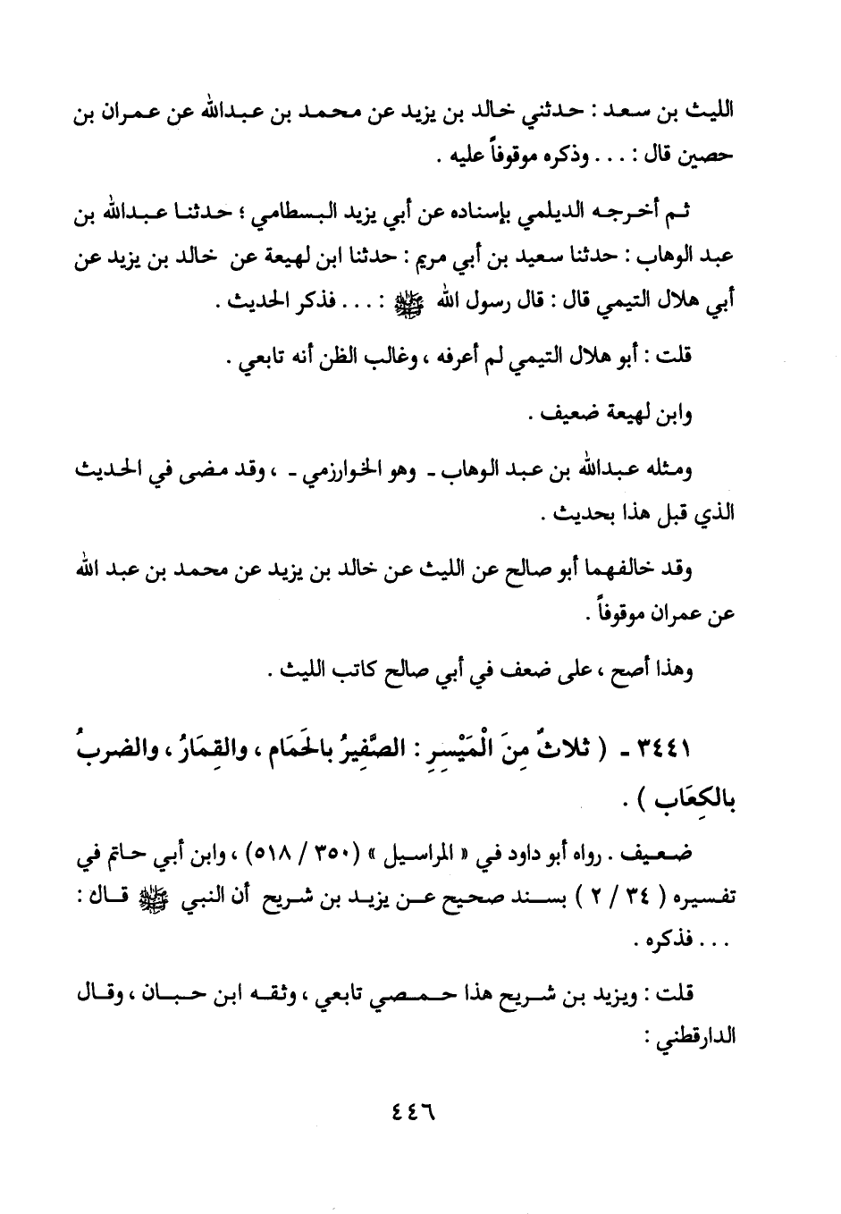 وقد خالفهما أبو صالح عن الليث عن خالد بن يزيد عن محمد بن عبد الله عن عمران موقوفاً.