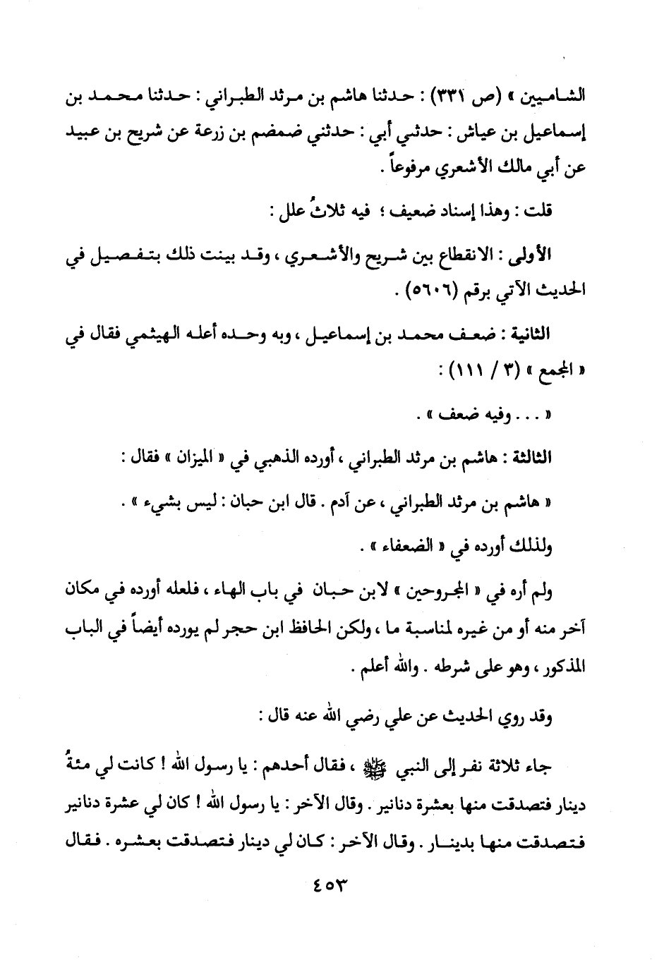 الشاميين" (ص331) : حدثنا هاشم بن مرثد الطبراني: حدثنا محمد بن إسماعيل بن عياش: حدثني أبي: حدثني ضمضم بن زرعة عن شريح بن عبيد عن ابي مالك الأشعري مرفوعاً.