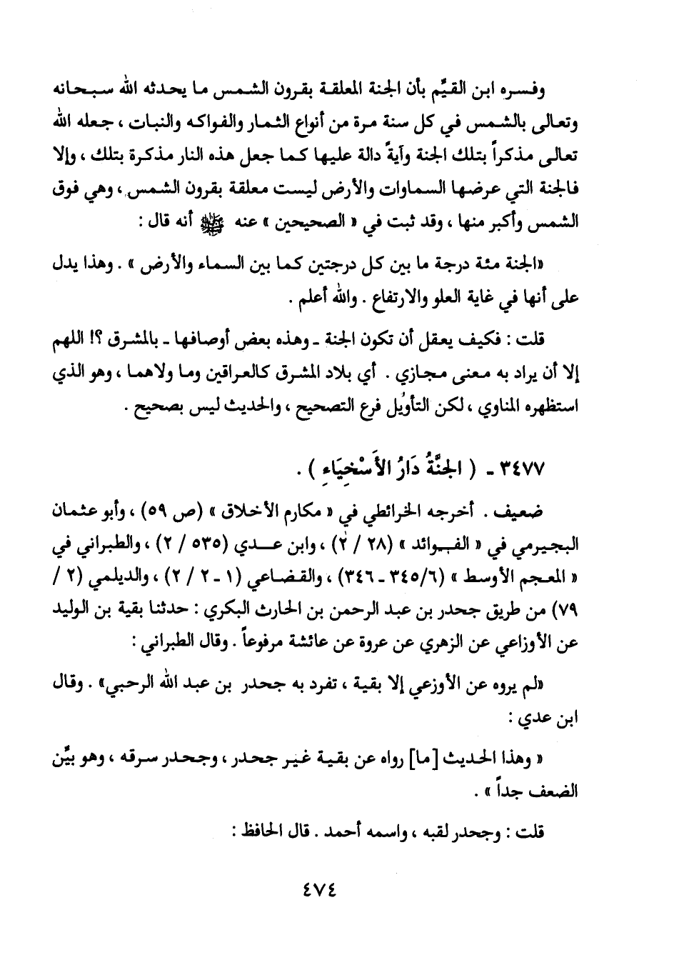 قلت: فكيف يعقل أن تكون الجنة - وهذه بعض أوصافها - بالمشرق؟! اللهم إلا أن يراد به معنى مجازي. أي بلاد المشرق كالعراقين وما ولاهما، وهو الذي استظهره المناوي فرع التصحيح، والحديث ليس بصحيح.