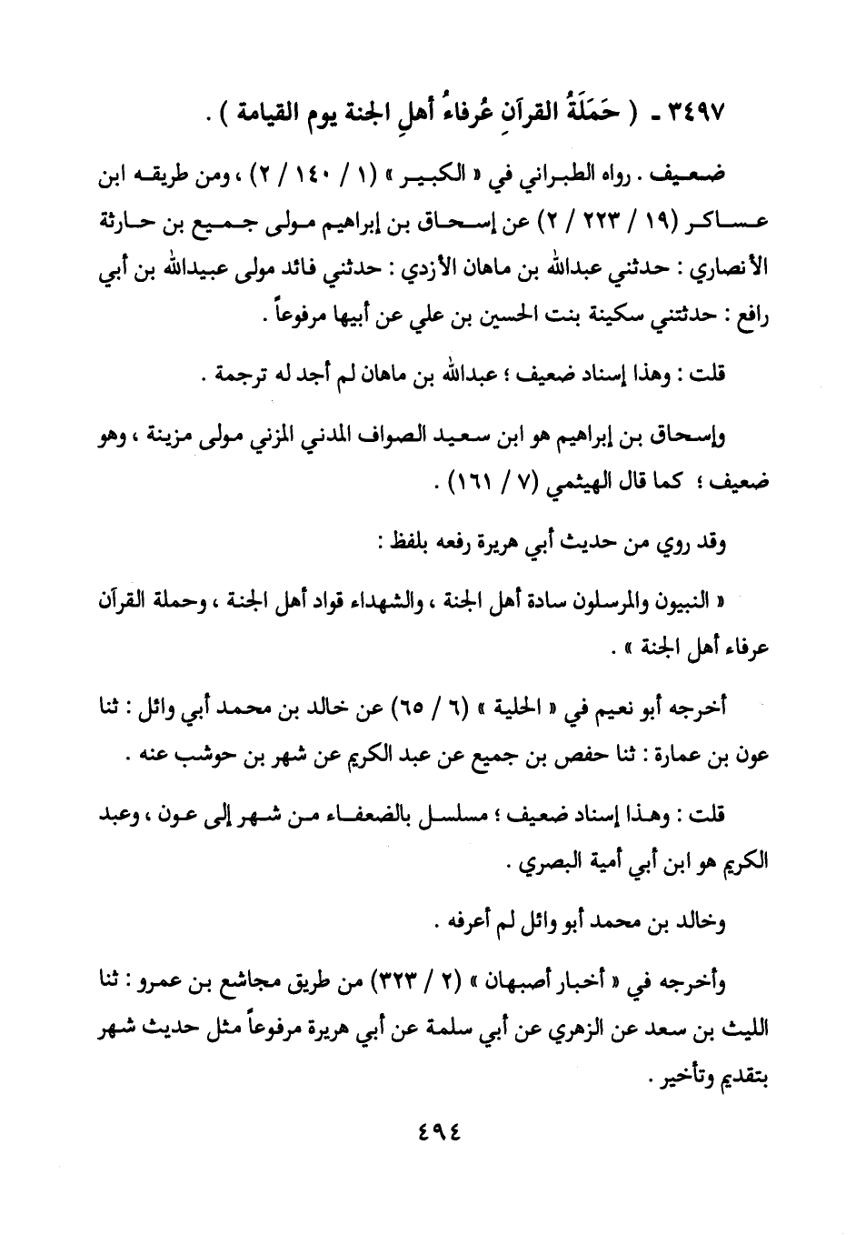 3497 - (حملة القرآن عرفاء أهل الجنة يوم القيامة) .