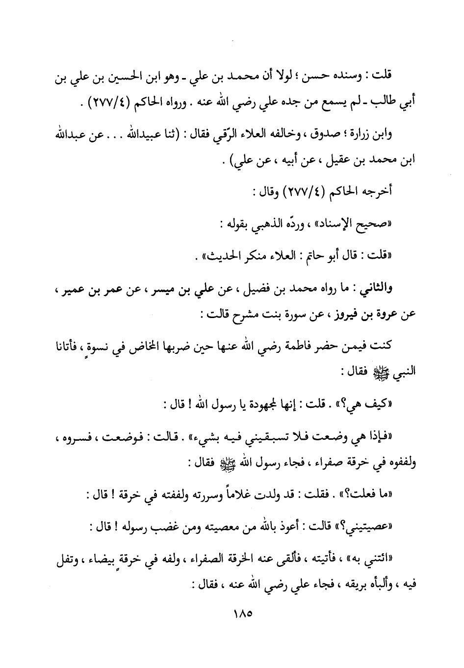 قلت: وسنده حسن؛ لولا أن محمد بن علي - وهو ابن الحسين بن علي بن أبي طالب - لم يسمع من جده علي رضي الله عنه. ورواه الحاكم (4/ 277) .