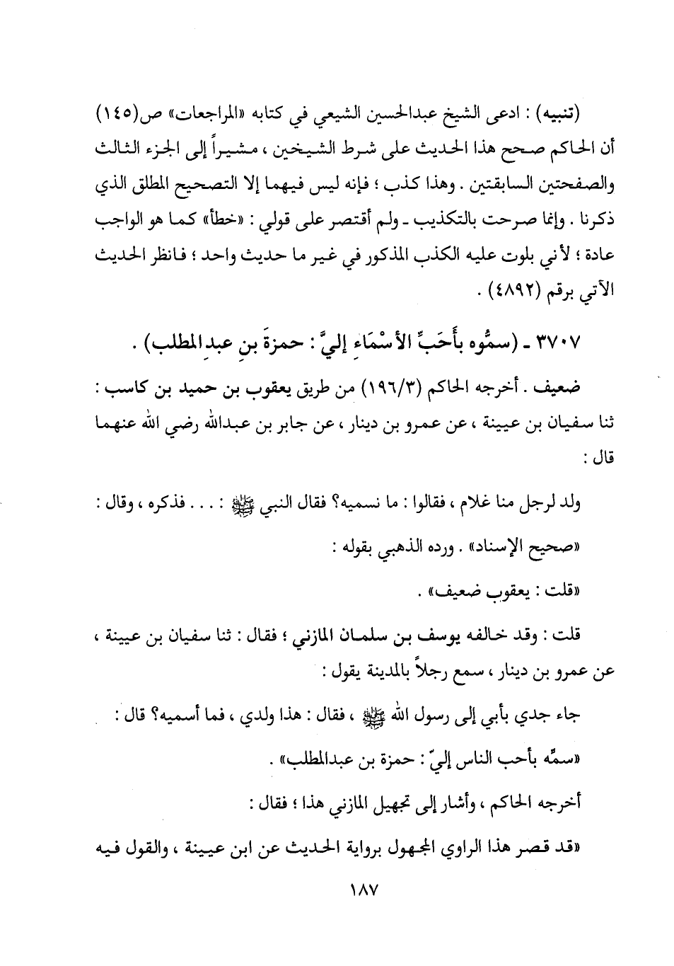 3707 - (سموه بأحب الأسماء إلي: حمزة بن عبد المطلب) .