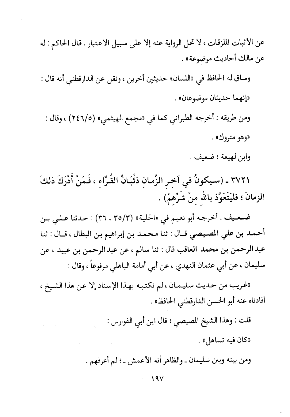 3721 - (سيكون في آخر الزمان ذئبان القراء، فمن أدرك ذلك الزمان؛ فليتعوذ بالله من شرهم) .