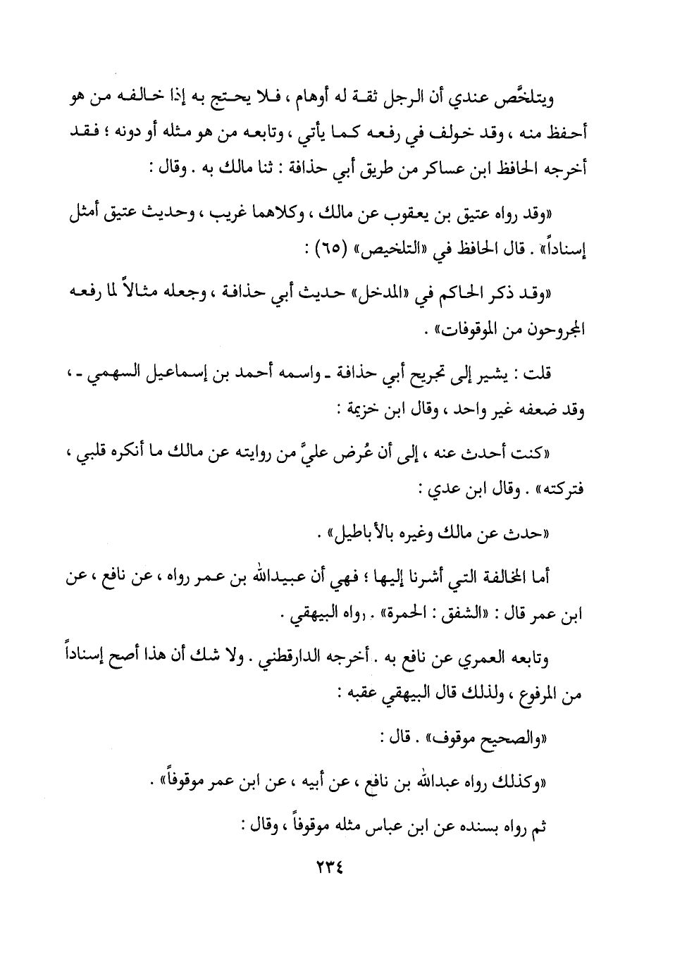 ويتخلص عندي أن الرجل ثقة له أوهام، فلا يحتج به إذا خالفه من هو أحفظ منه، وقد خولف في رفعه كما يأتي، وتابعه من هو مثله أو دونه؛ فقد أخرجه الحافظ ابن عساكر من طريق أبي حذافة: حدثنا مالك به. وقال: