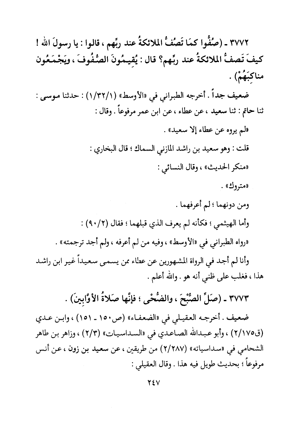 3772 - (صفوا كما تصف الملائكة عند ربهم، قالوا: يا رسول الله! كيف تصف الملائكة عند ربهم؟ قال: يقيمون الصفوف، ويجمعون مناكبهم) .