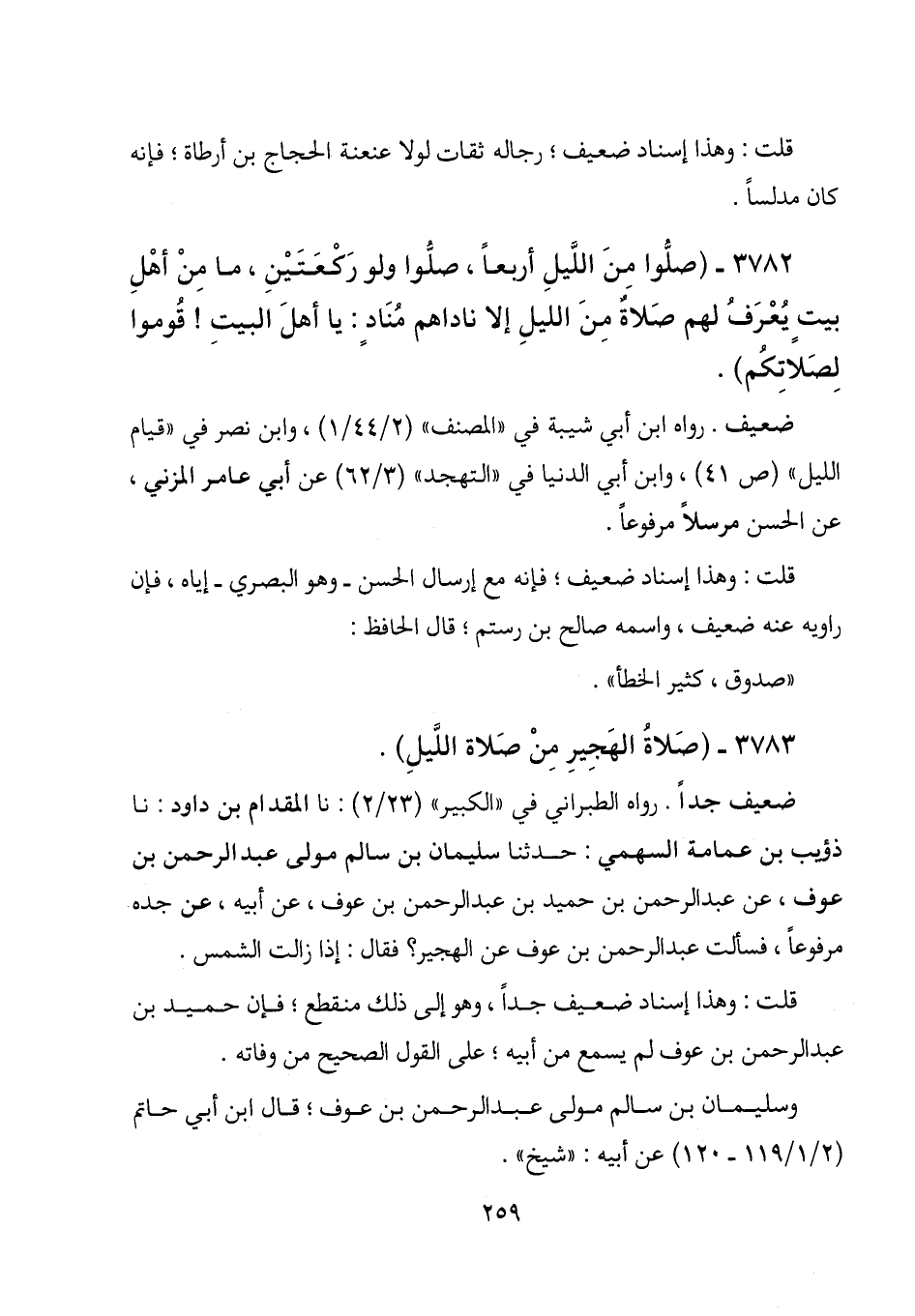 3782 - (صلوا من الليل أربعاً، صلوا ولو ركعتين، ما من أهل بيت يعرف لهم صلاة من الليل إلا ناداهم مناد: ياأهل البيت! قوموا لصلاتكم) .