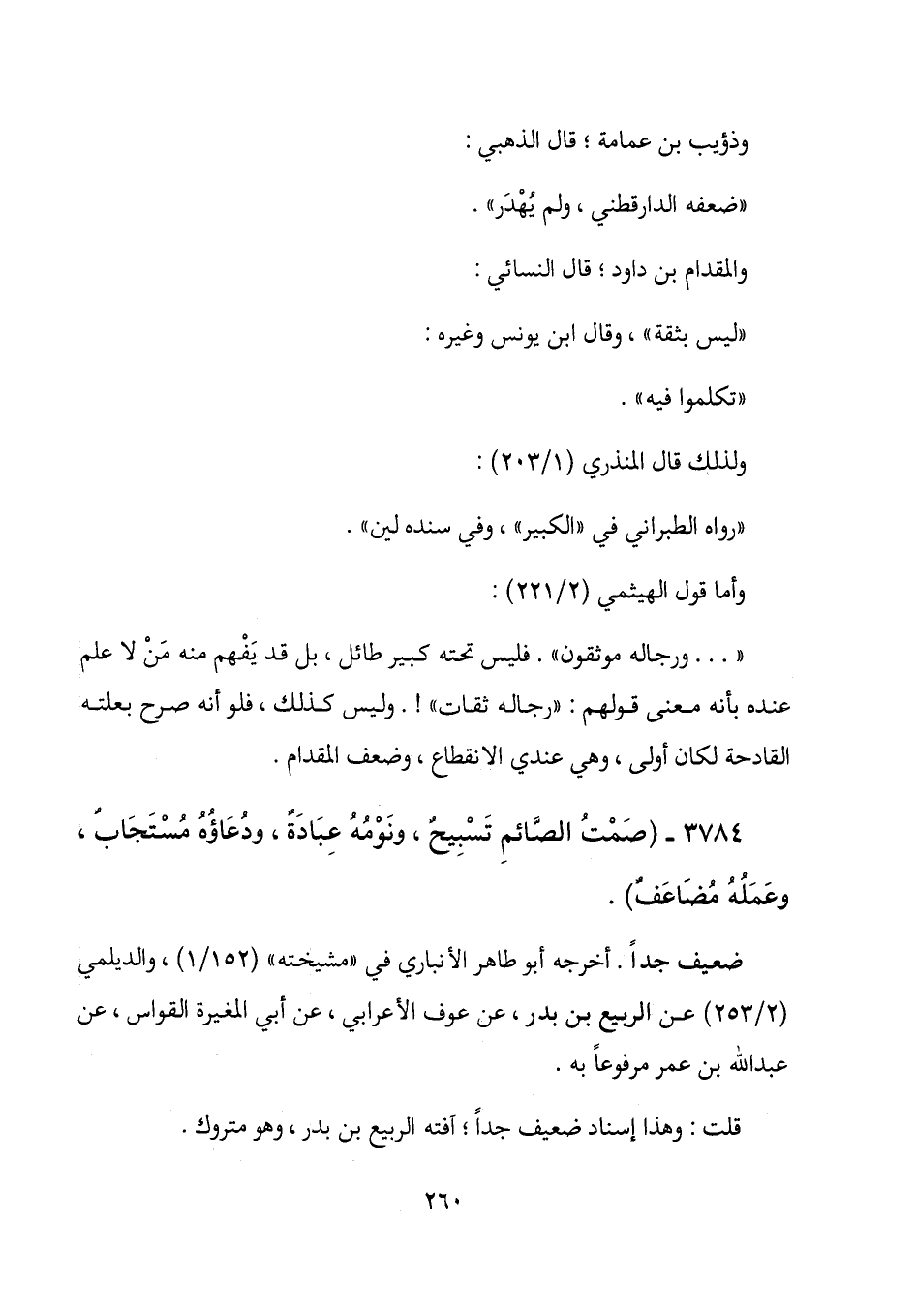 " ... ورجاله موثقون". فليس تحته كبير طائل، بل قد يفهم منه من لا علم عنده بأنه معنى قولهم: "رجاله ثقات"! . وليس كذلك، فلو أنه صرح بعلته القادحة لكان أولى، وهي عندي الانقطاع، وضعف المقدام.