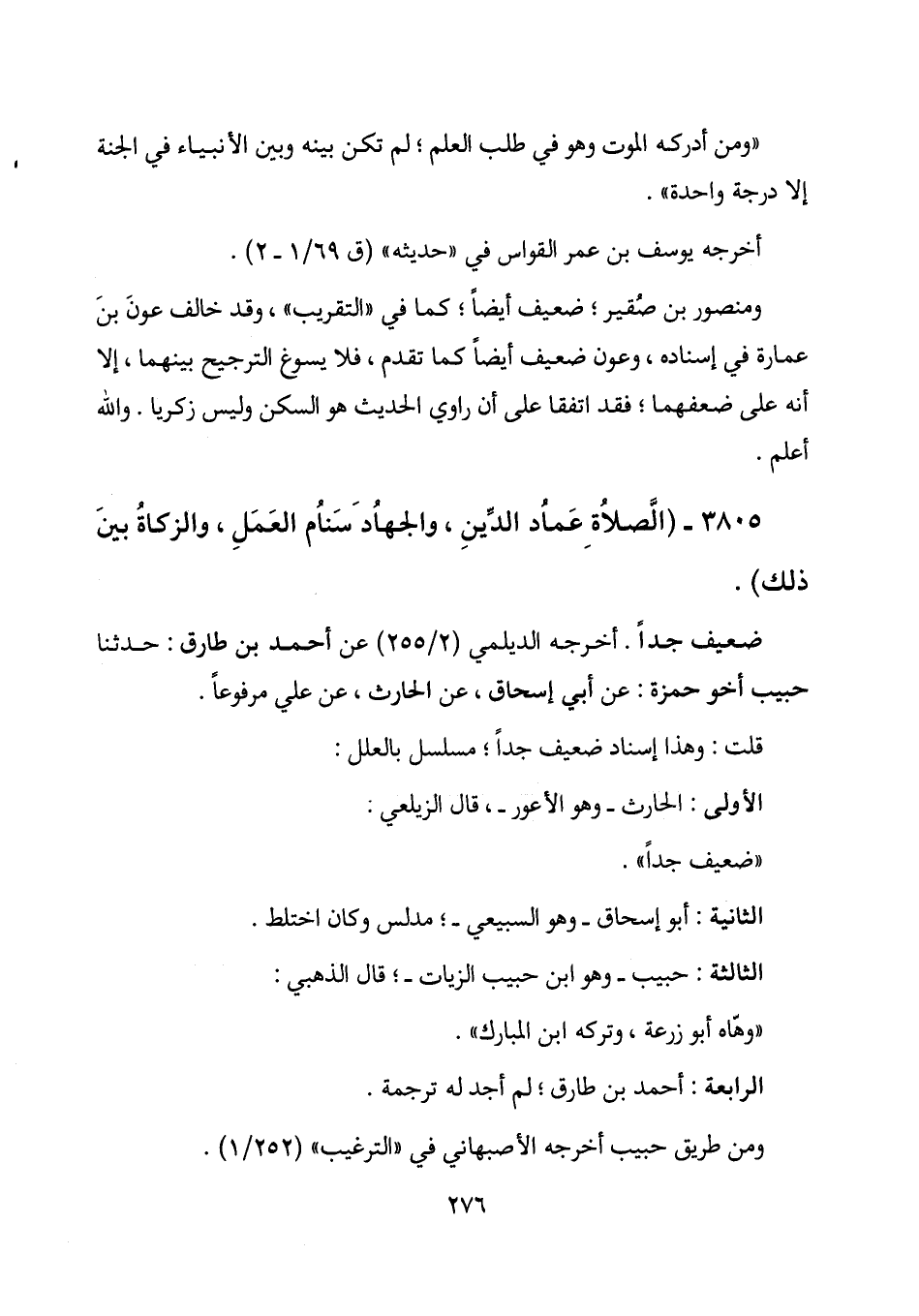 3805 - (الصلاة عماد الدين، والجهاد سنام العمل، والزكاة بين ذلك) .