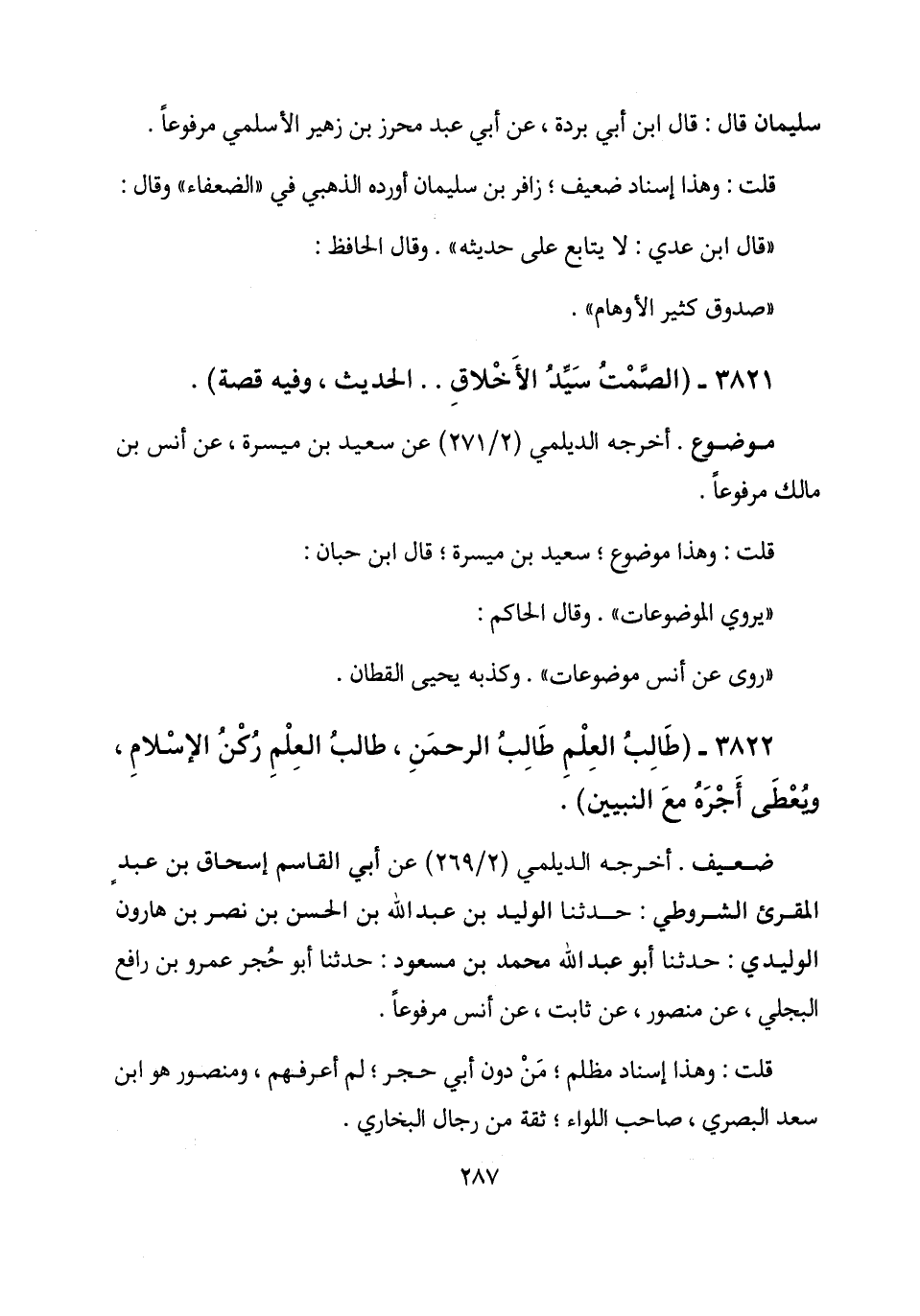 3822 - (طالب العلم طالب الرحمن، طالب العلم ركن الإسلام، ويعطى أجره مع النبيين) .