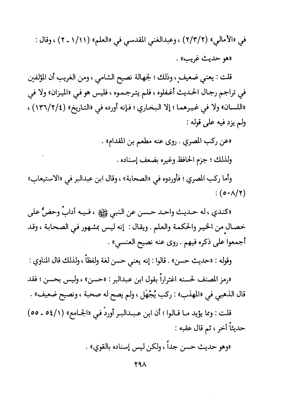 "رمز المصنف لحسنه اغتراراً بقول ابن عبد البر: "حسن"، وليس بحسن؛ فقد قال الذهبي في "المهذب": ركب يجهل، ولم يصح له صحبة، ونصيح ضعيف".