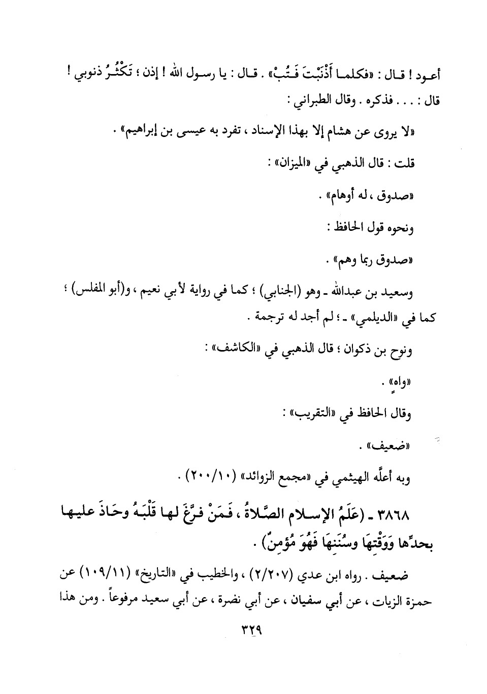 3868 - (علم الإسلام الصلاة، فمن فرغ لها قلبه وحاذ عليها بحدها ووقتها وسننها فهو مؤمن) .