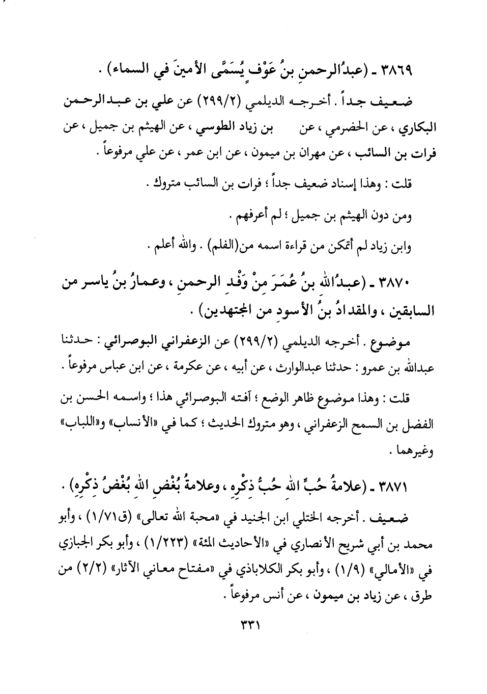 3870 - (عبد الله بن عمر من وفد الرحمن، وعمار بن ياسر من السابقين، والمقداد بن الأسود من المجتهدين) .