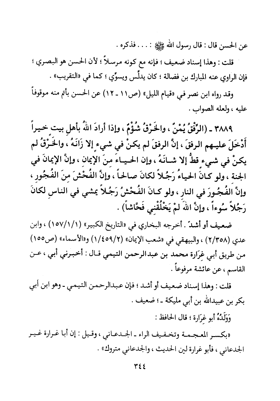 أخرجه البخاري في "التاريخ الكبير" (1/ 1/ 157) ، وابن عدي (358/ 2) ، والبيهقي في "شعب الإيمان" (2/ 459/ 1) و "الأسماء" (ص 155) من طريق أبي غرارة محمد بن عبد الرحمن التيمي قال: أخبرني أبي، عن القاسم، عن عائشة مرفوعاً.