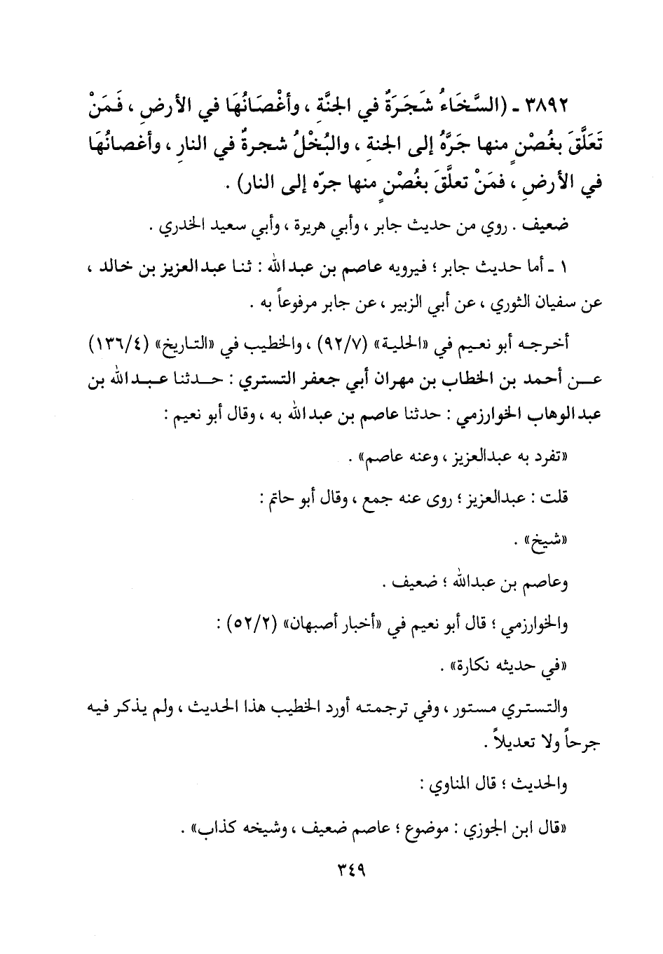 3892 - (السخاء شجرة في الجنة، وأغصانها في الأرض، فمن تعلق بغصن منها جره إلى الجنة، والبخل شجرة في النار، وأغصانها في الأرض، فمن تعلق بغصن منها جره إلى النار) .