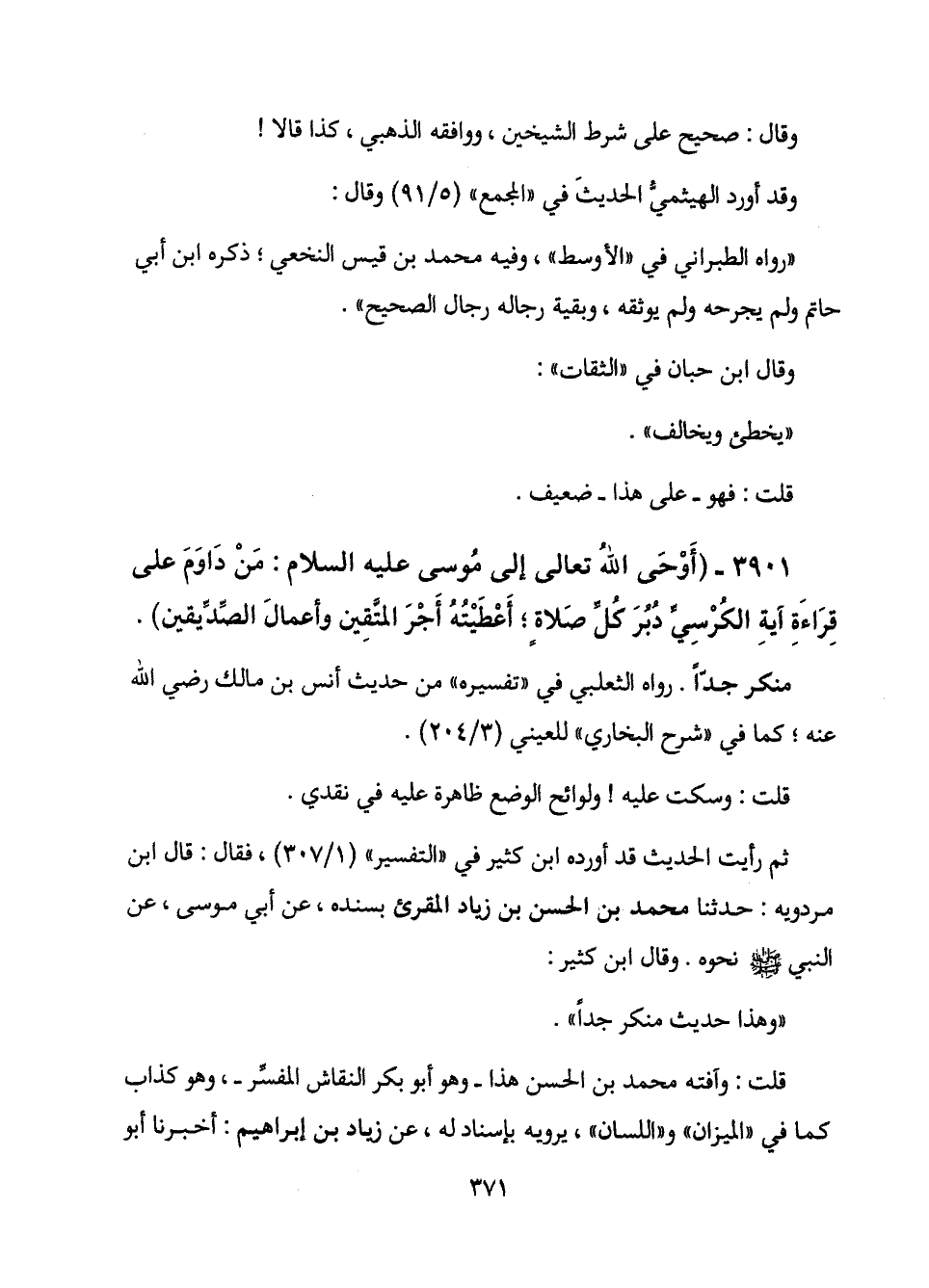 3901 - (أوحى الله تعالى إلى موسى عليه السلام: من داوم على قراءة آية الكرسي دبر كل صلاة؛ أعطيته أجر المتقين وأعمال الصديقين) .