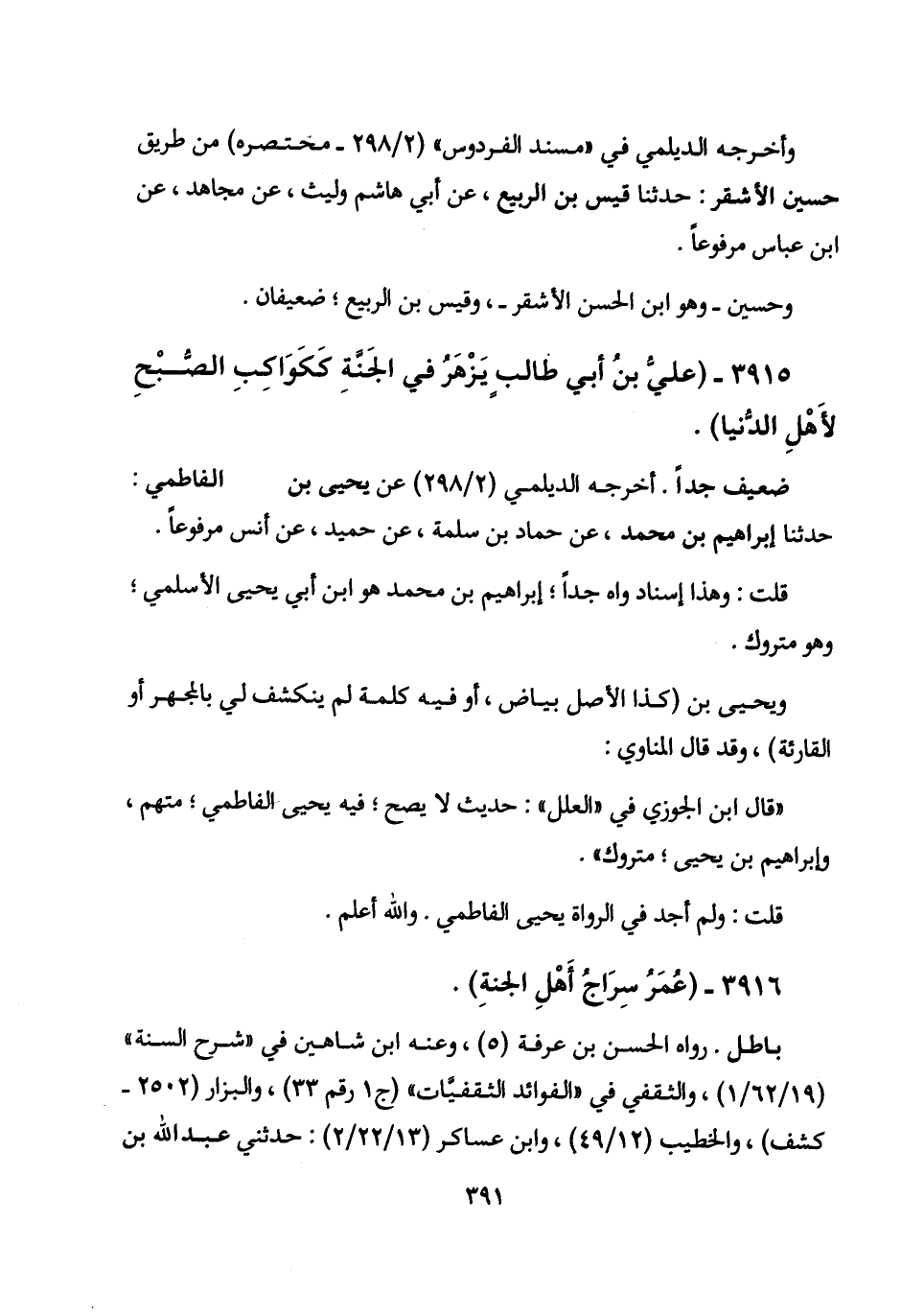 3915 - (علي بن أبي طالب يزهر في الجنة ككواكب الصبح لأهل الدنيا) .