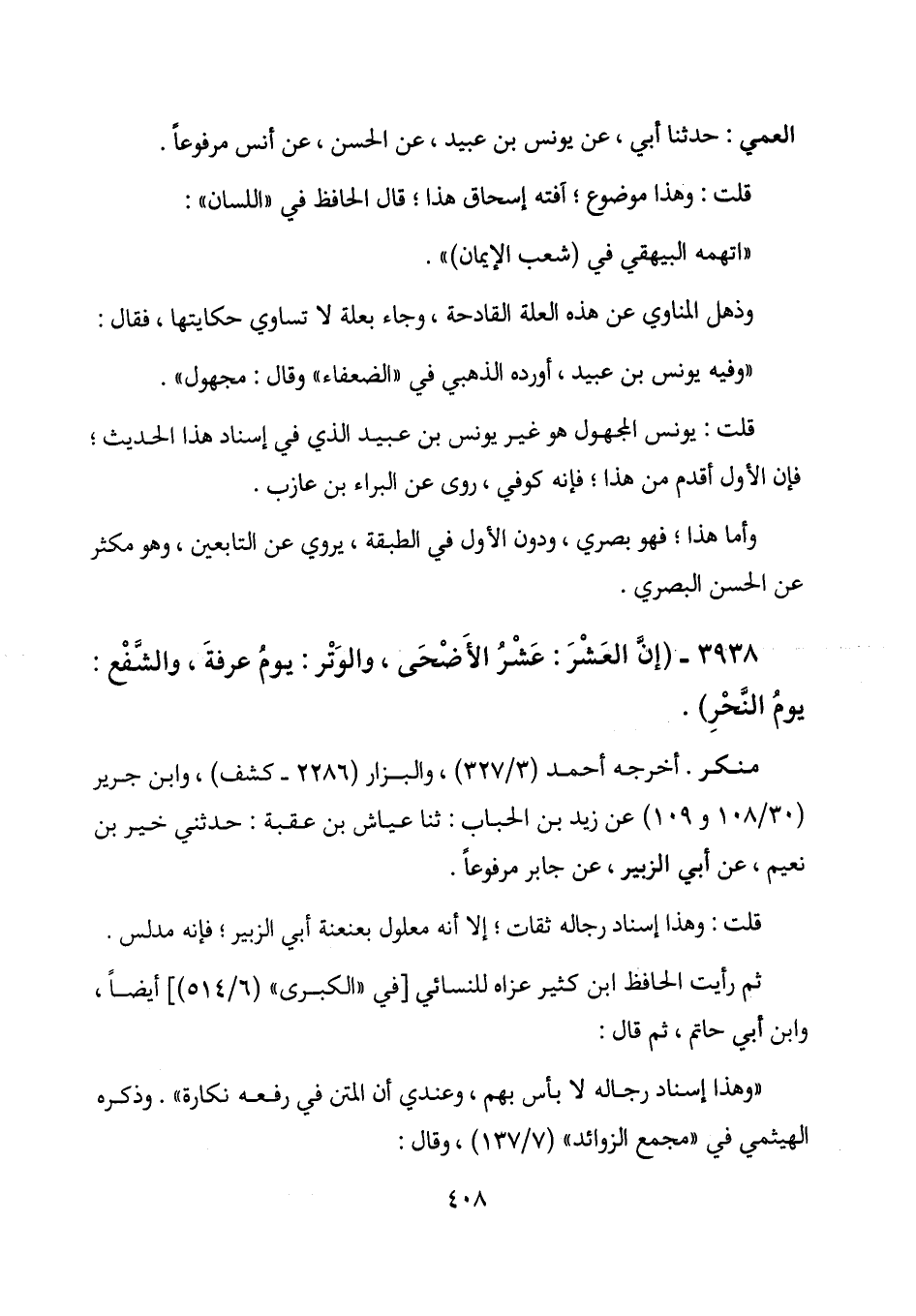 "وفيه يونس بن عبيد، أورده الذهبي في "الضعفاء" وقال: مجهول".