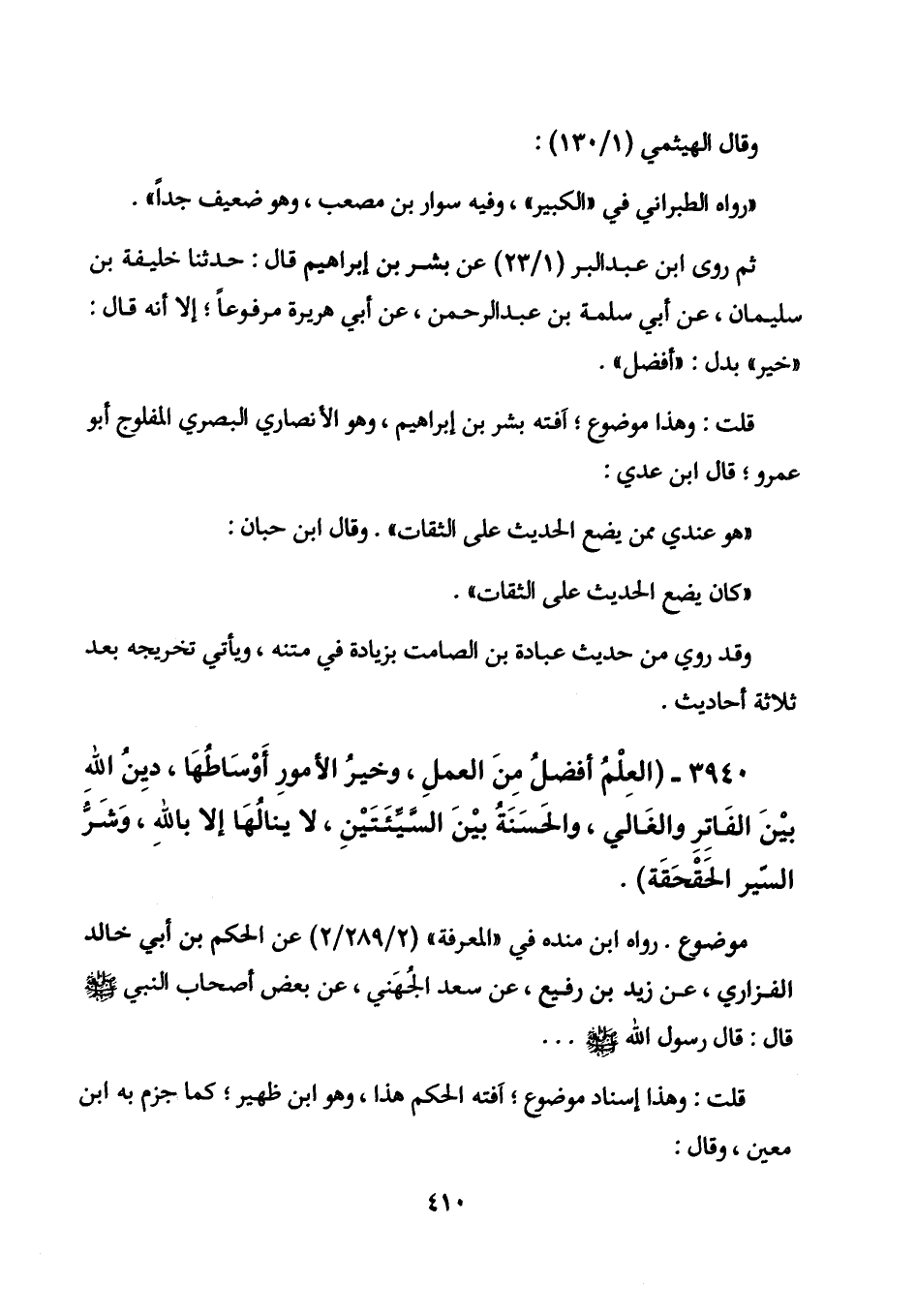 ثم روى ابن عبد البر (1/ 23) عن بشر بن إبراهيم قال: حدثنا خليفة بن سليمان، عن أبي سلمة بن عبد الرحمن، عن أبي هريرة مرفوعاً؛ إلا أنه قال: "خير" بدل: "أفضل".