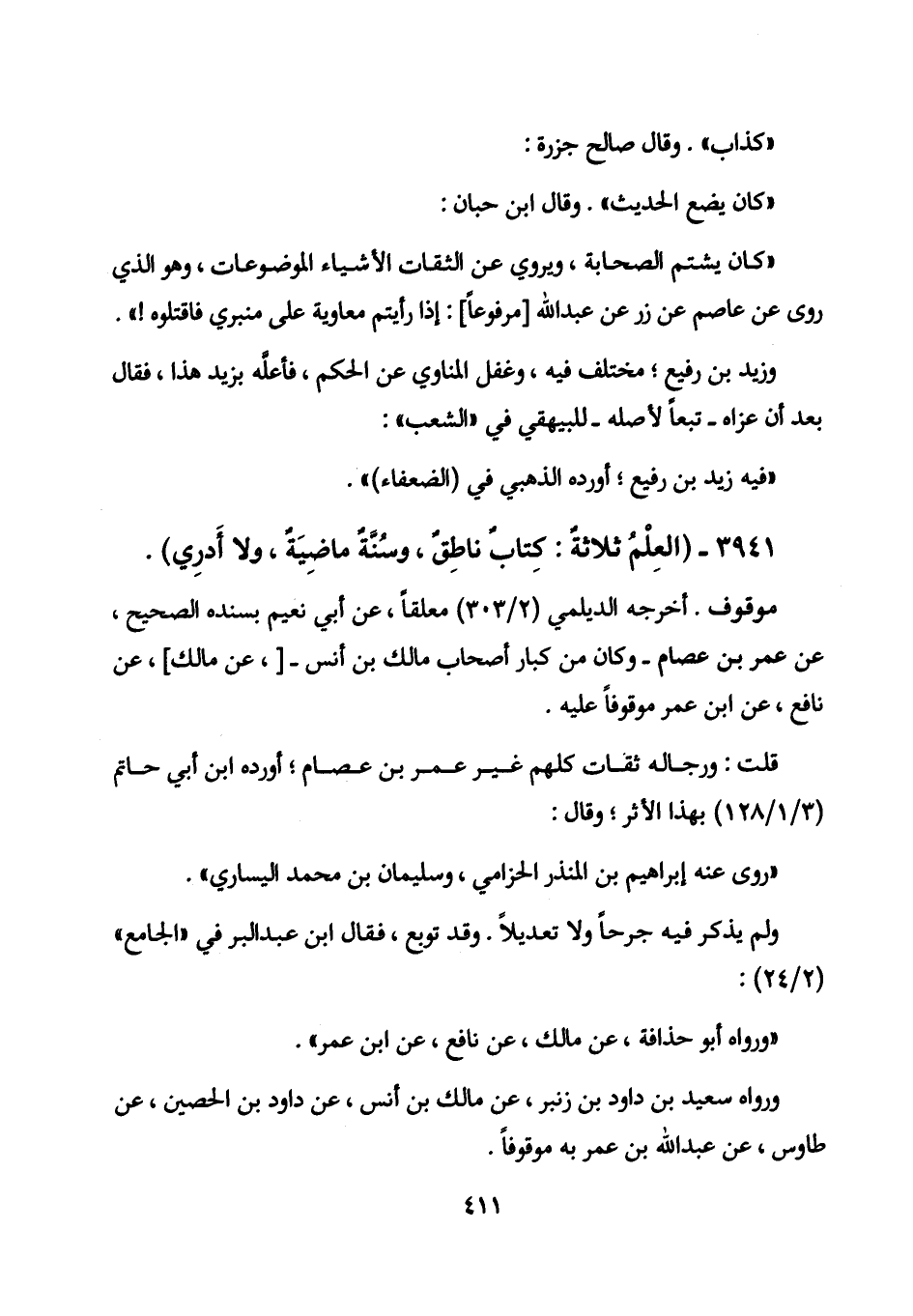3941 - (العلم ثلاثة: كتاب ناطق، وسنة ماضية، ولا أدري) .