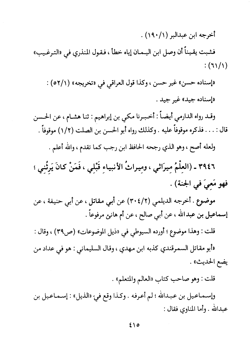 3946 - (العلم ميراثي، وميراث الأنبياء قبلي، فمن كان يرثني؛ فهو معي في الجنة) .