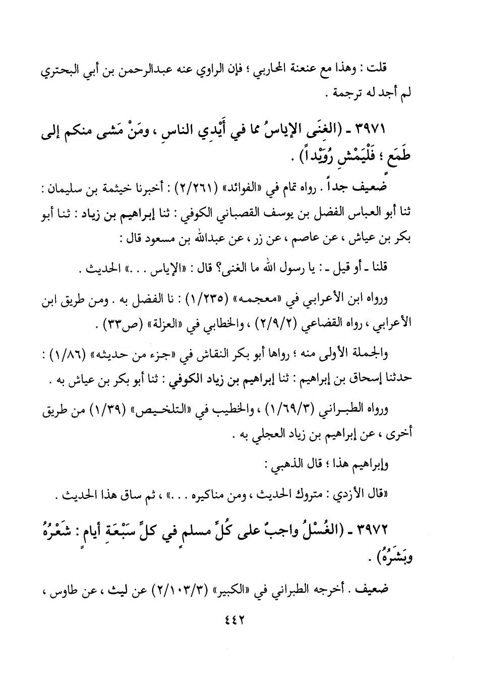 3971 - (الغنى الإياس مما في أيدي الناس، ومن مشى منكم إلى طمع؛ فليمش رويداً) .