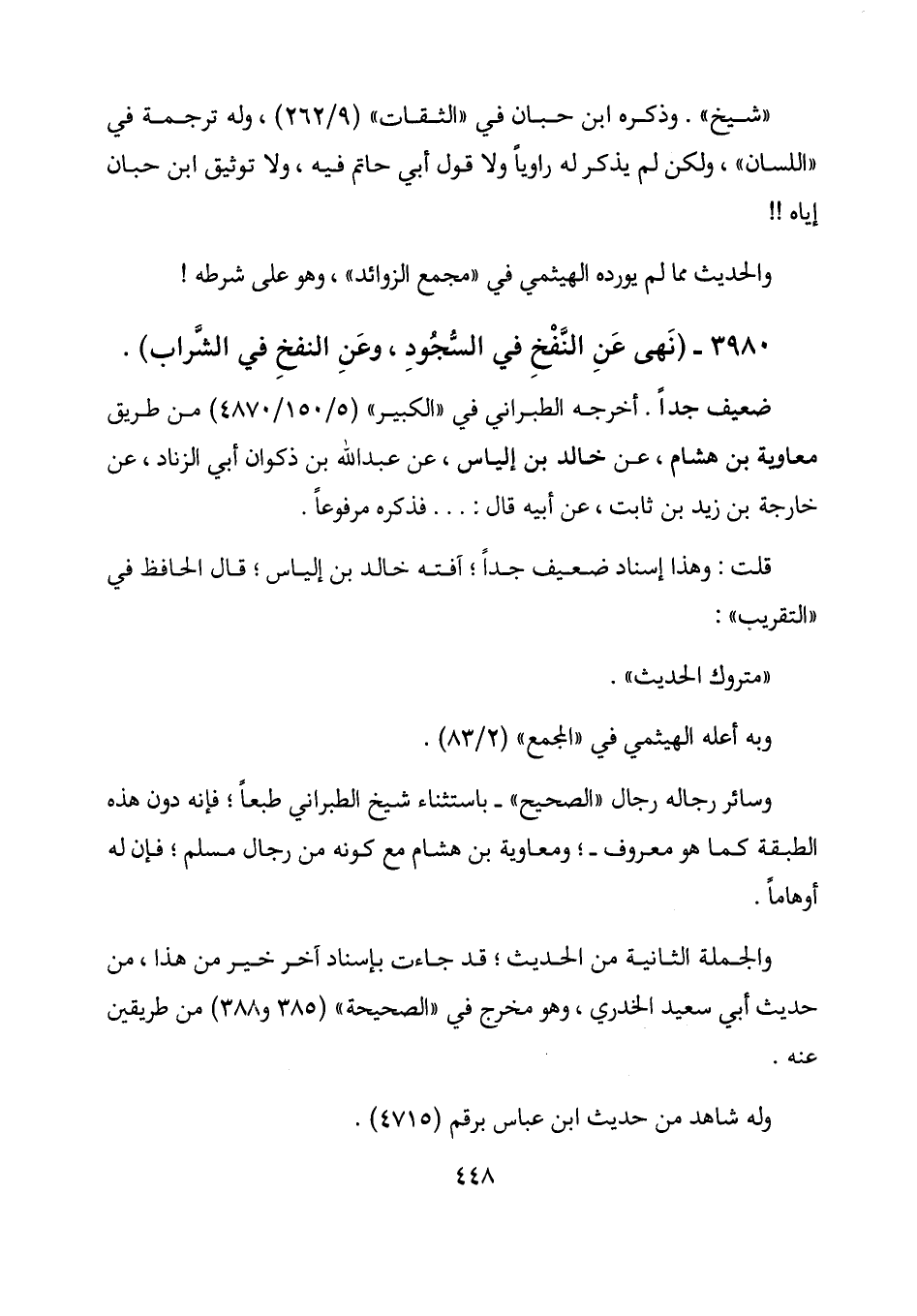3980 - (نهى عن النفخ في السجود، وعن النفخ في الشراب) .