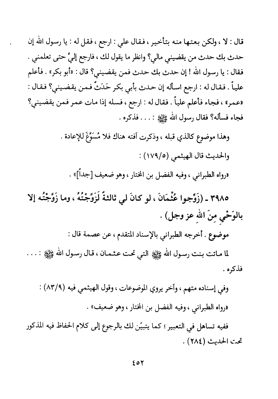 3985 - (زوجوا عثمان، لو كان لي ثالثة لزوجته، وما زوجته إلا بالوحي من الله عز وجل) .