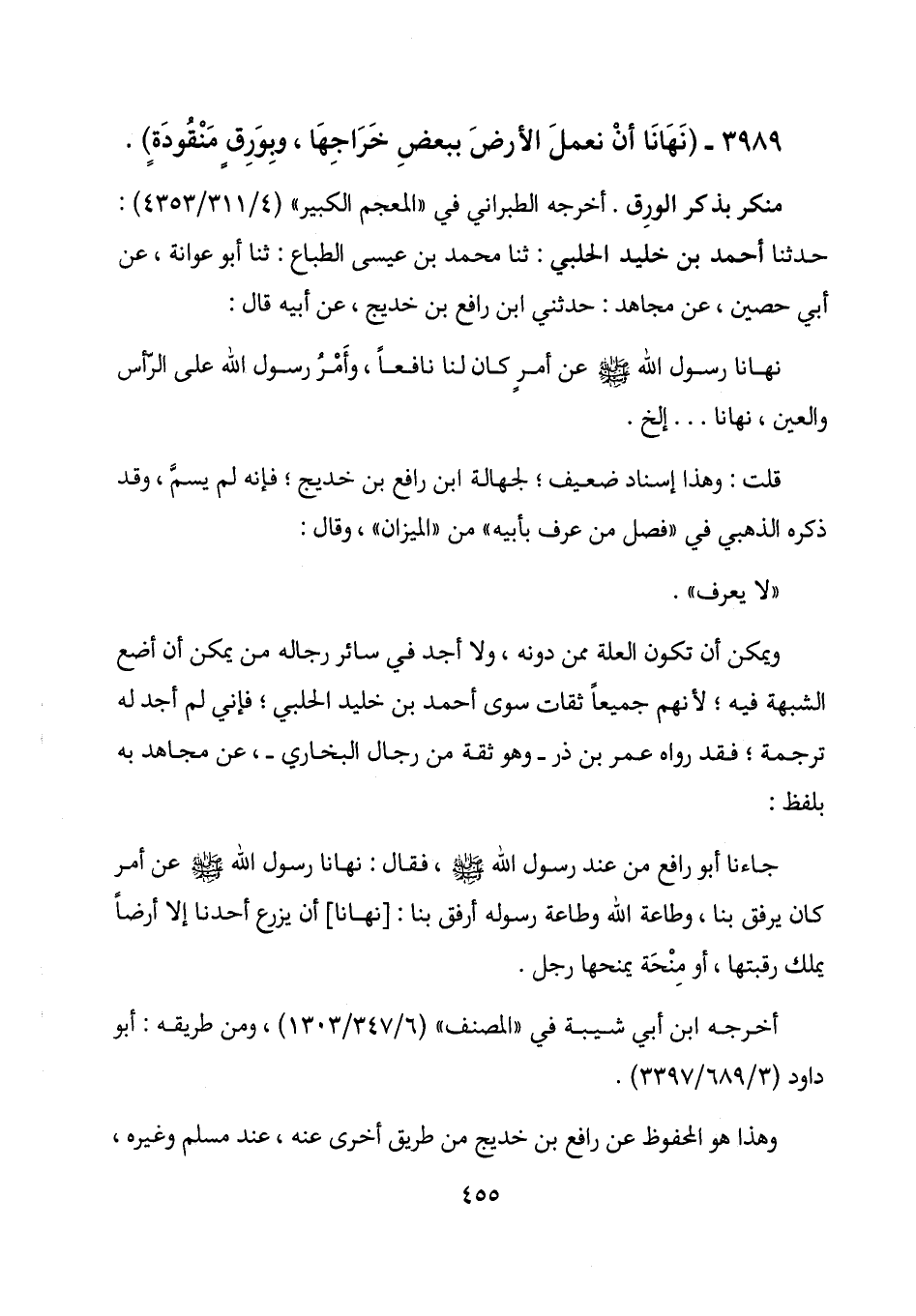 3989 - (نهانا أن نعمل الأرض ببعض خراجها، وبورق منقودة) .