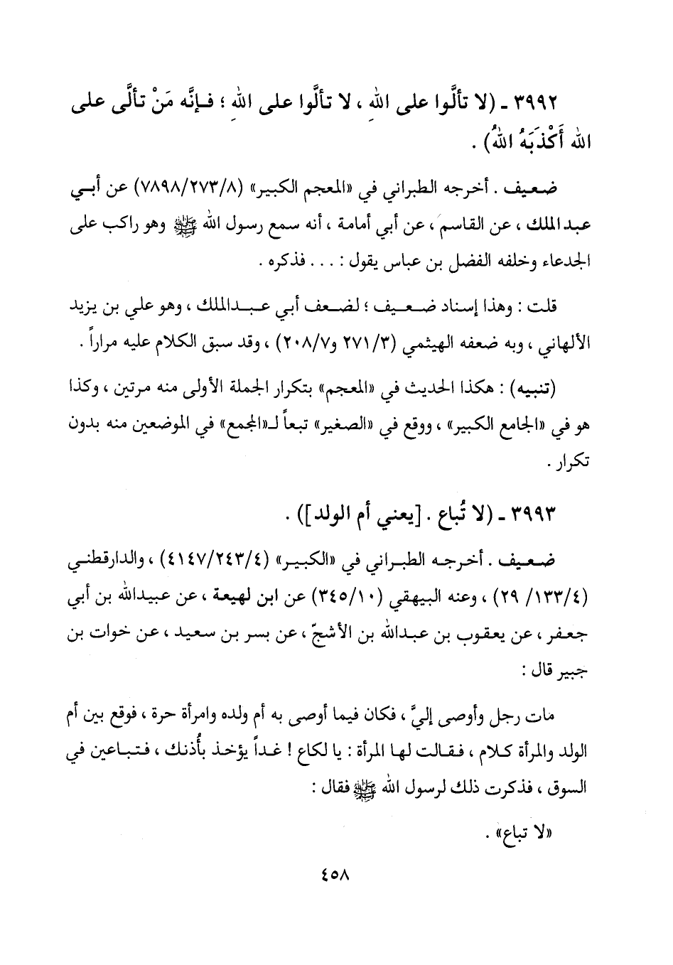 3992 - (لا تألوا على الله، لا تألوا على الله؛ فإنه من تألى على الله أكذبه الله) .