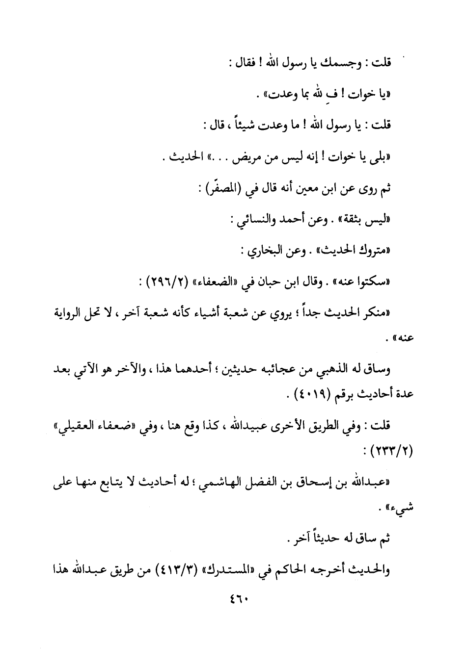 قلت: وفي الطريق الأخرى عبيد الله، كذا وقع هنا، وفي "ضعفاء العقيلي" (2/ 233) :