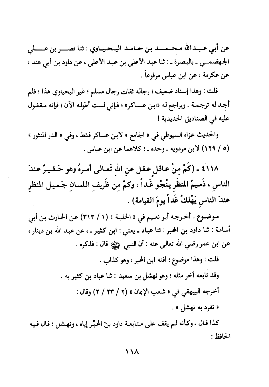 4118 - (كم من عاقل عقل عن الله تعالى أمره وهو حقير عند الناس، ذميم المنظر ينجو غداً، وكم من ظريف السان جميل المنظر عند الناس يهلك غداً يوم القيامة) .