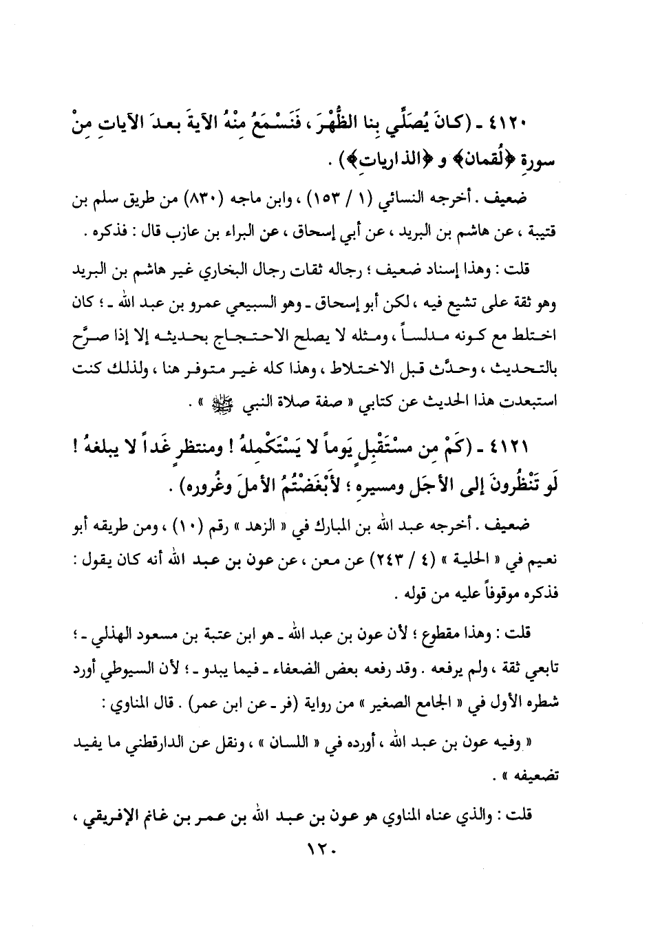 4120 - (كان يصلي بنا الظهر، فنسمع منه الآية بعد الآيات من سورة (لقمان) و (الذاريات)) .