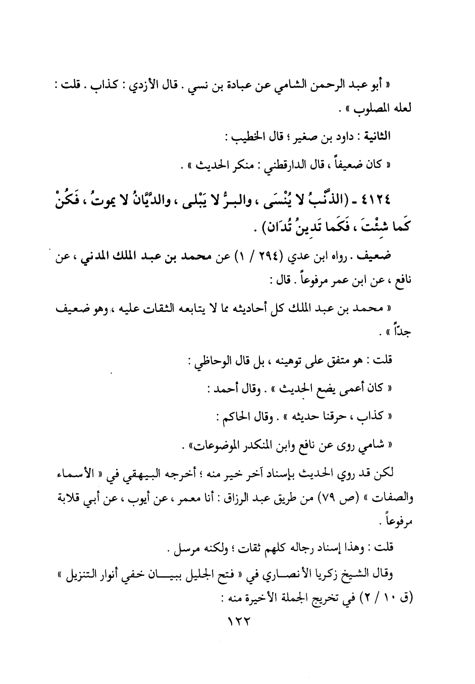 4124 - (الذنب لا ينسى، والبر لا يبلى، والديان لا يموت، فكن كما شئت، فكما تدين تدان) .