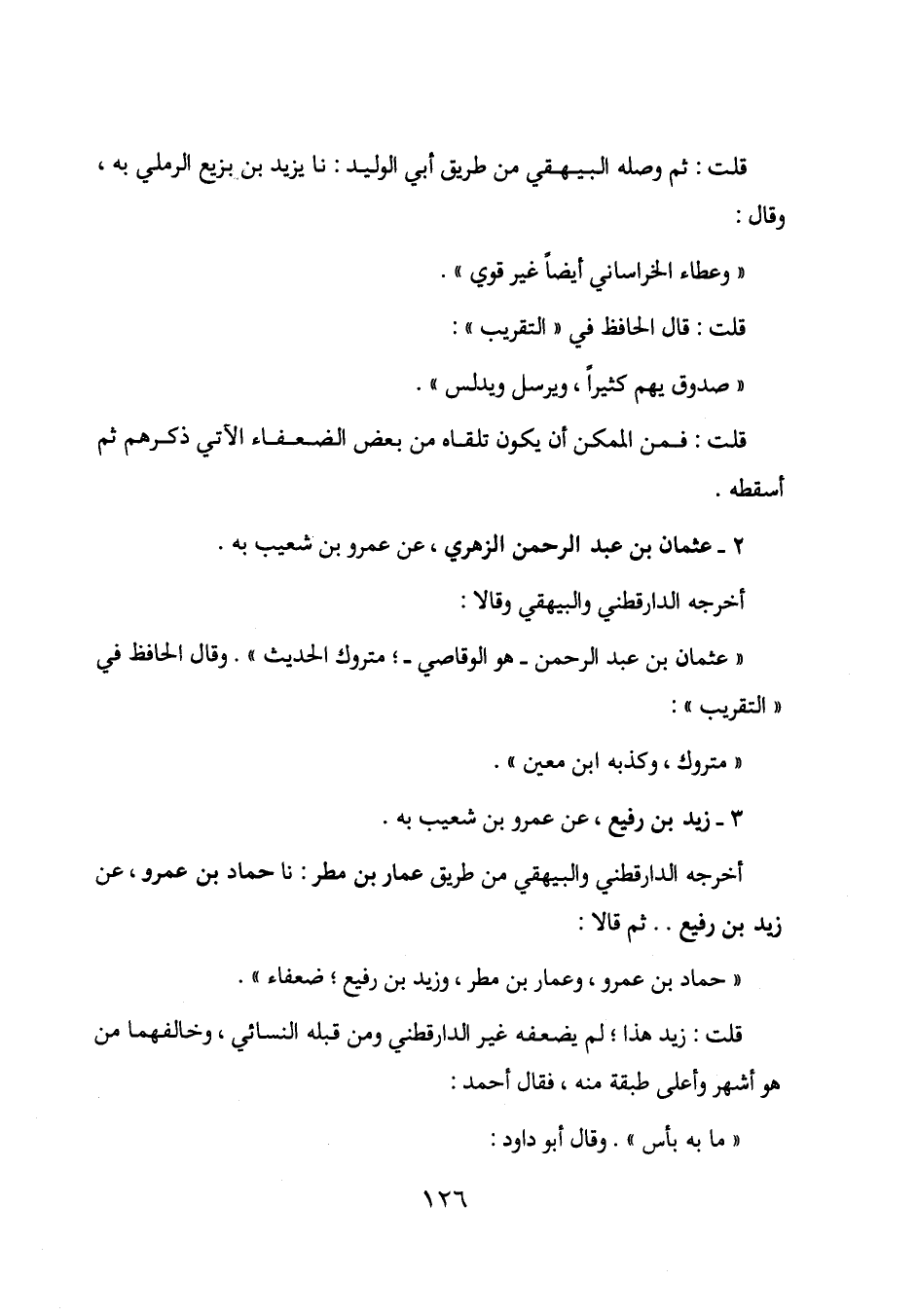 "حماد بن عمرو، وعمار بن مطر، وزيد بن رفيع؛ ضعفاء".