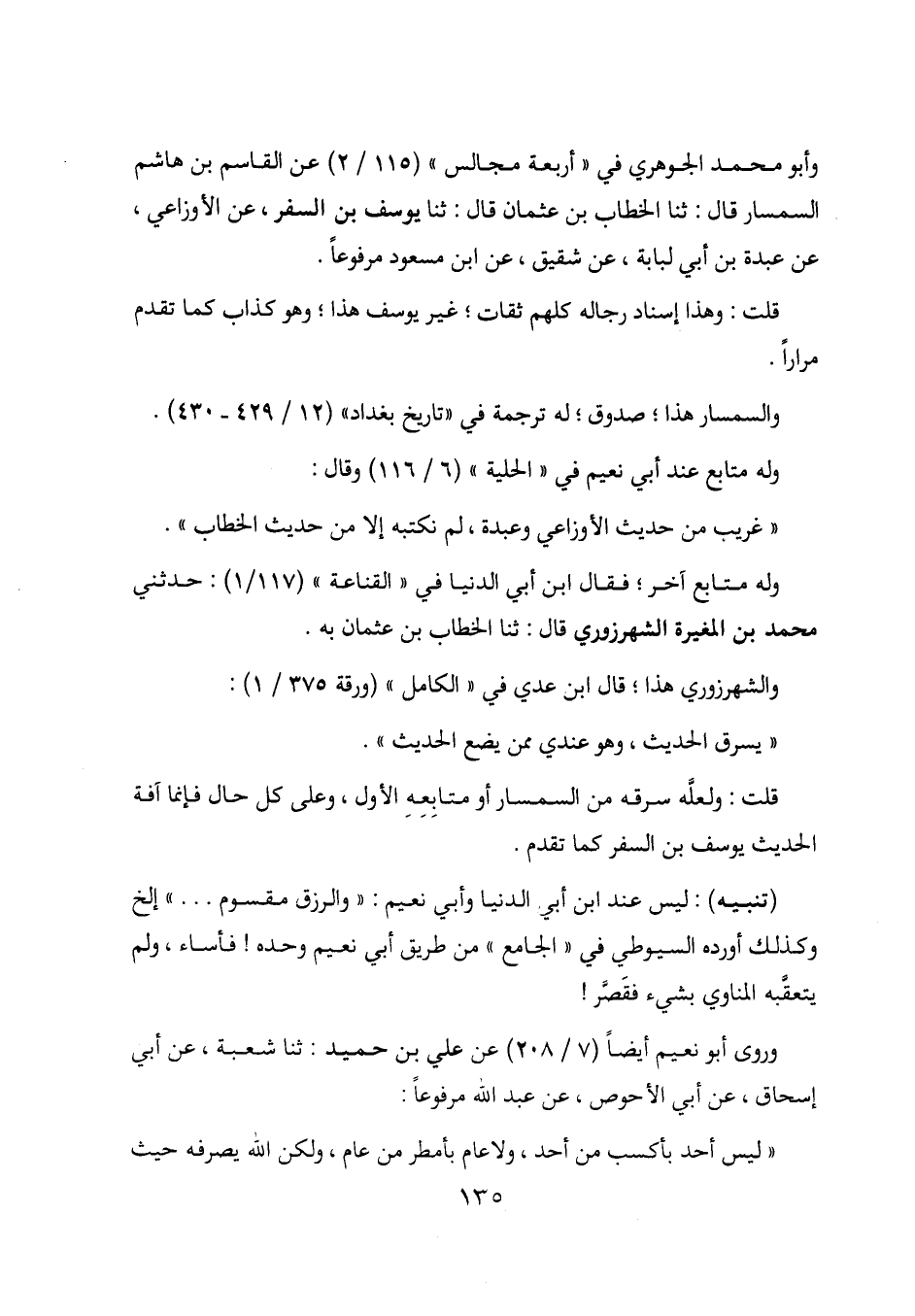 قلت: ولعله سرقه من السمسار أو متابعه الأول، وعلى كل حال فإنما آفة الحديث يوسف بن السفر كما تقدم.