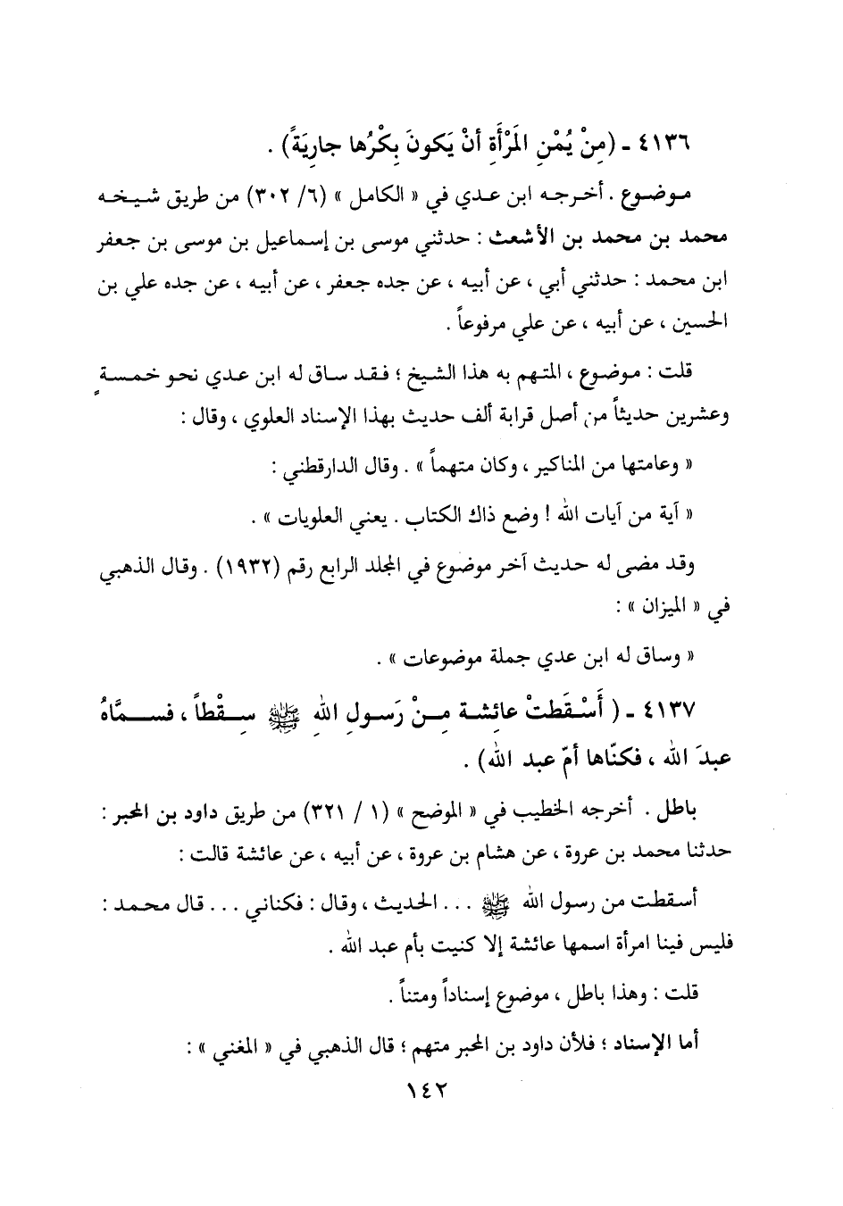 قلت: موضوع، المتهم به هذا الشيخ؛ فقد ساق له ابن عدي نحو خمسة وعشرين حديثاً من أصل قرابة ألف حديث بهذا الإسناد العلوي، وقال: