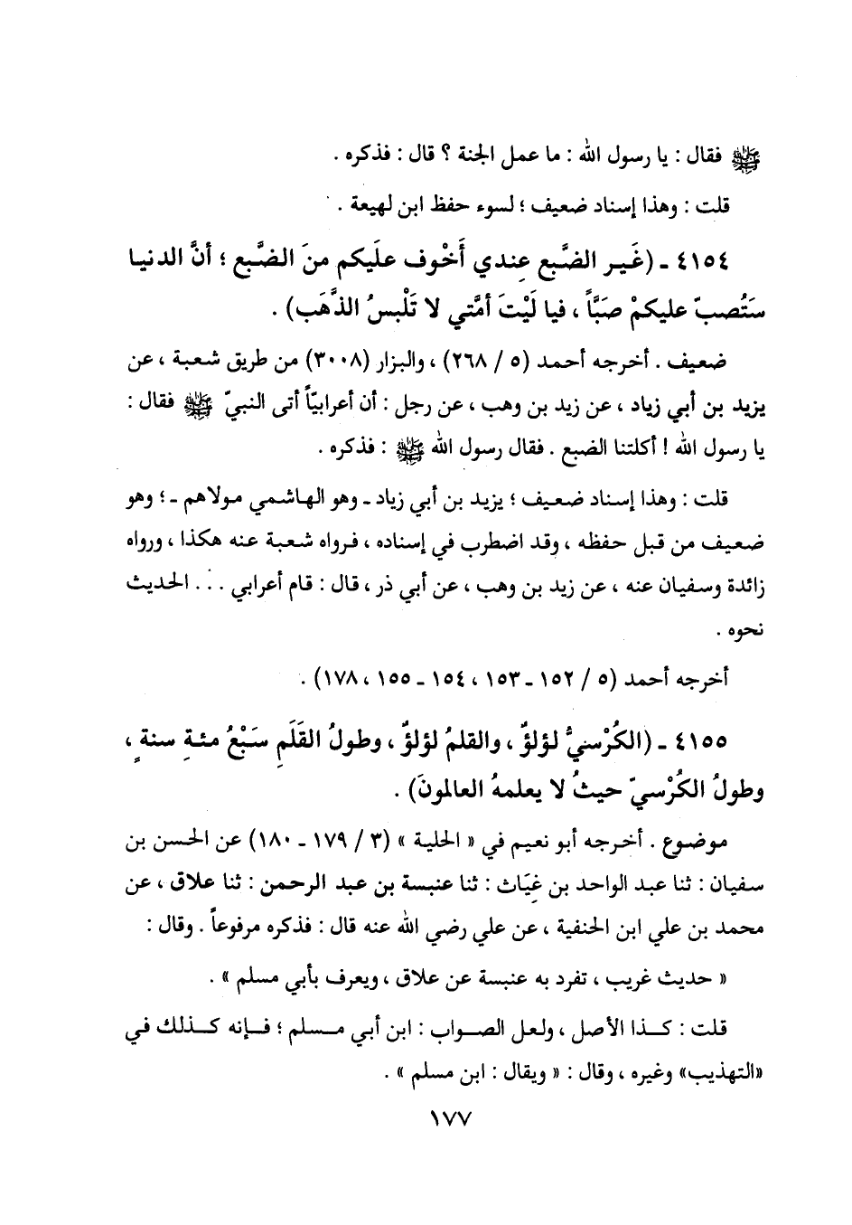4155 - (الكرسي لؤلؤ، والقلم لؤلؤ، وطول القلم سبع مئة سنة، وطول الكرسي حيث لا يعلمه العالمون) .
