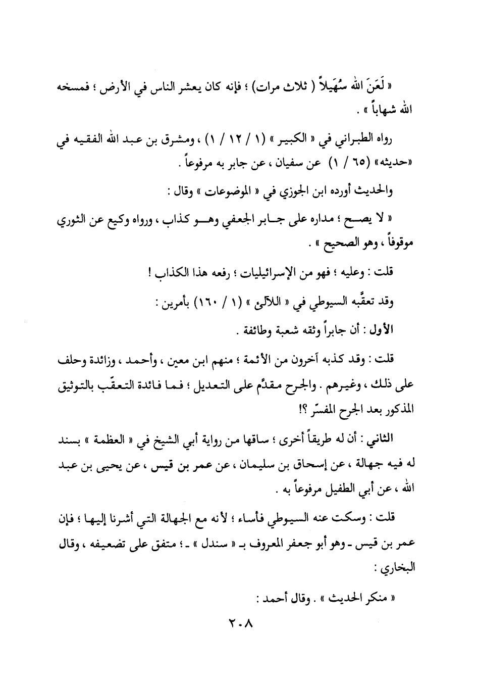 "لعن الله سهيلاً (ثلاث مرات) ؛ فإنه كان يعشر الناس في الأرض؛ فمسخه الله شهاباً".