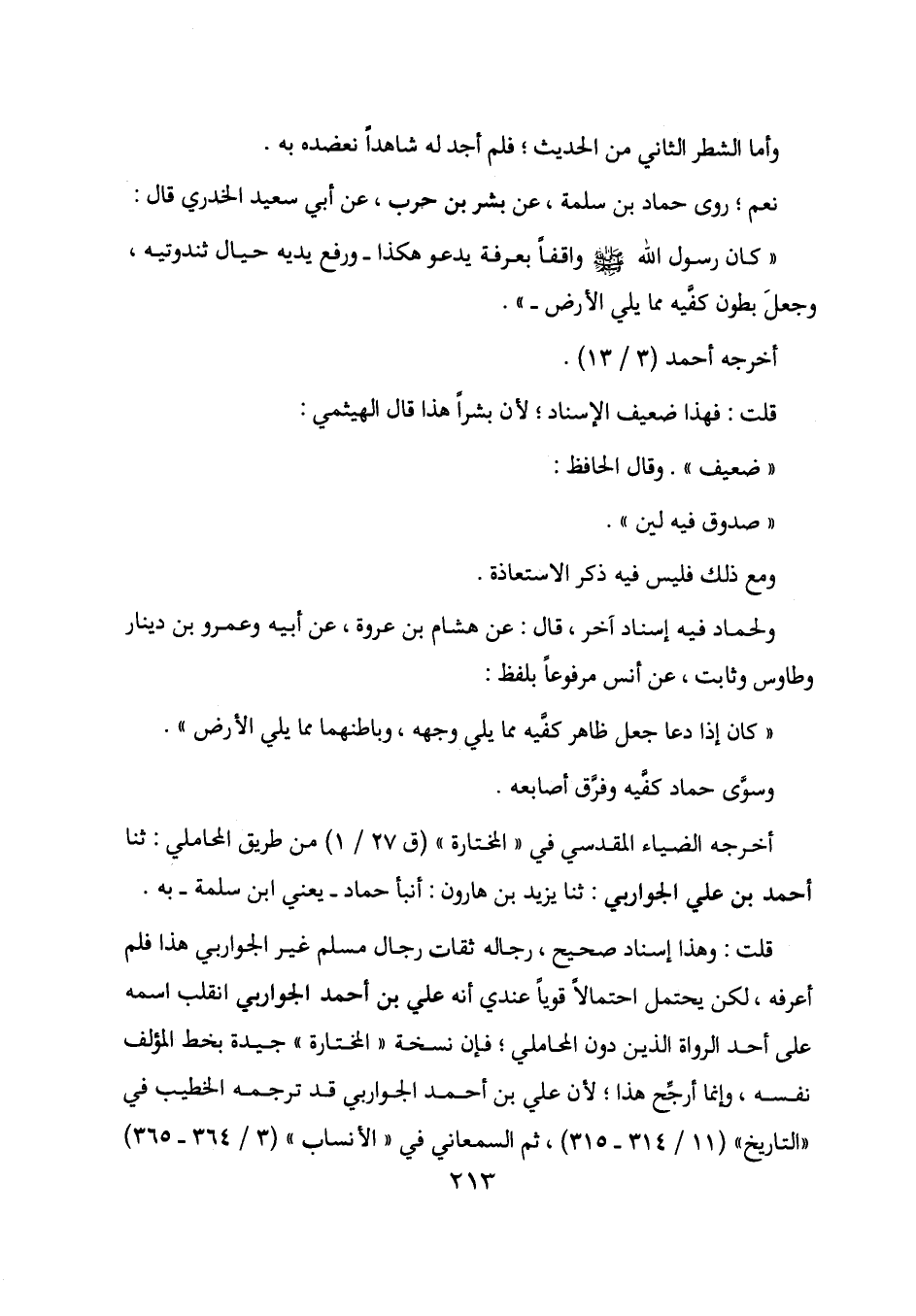 قلت: وهذا إسناد صحيح، رجاله ثقات رجال مسلم غير الجواربي انقلب اسمه على أحد الرواة الذين دون المحاملي؛ فإن نسخة "المختارة" جيدة بخط المؤلف نفسه، وإنما أرجح هذا؛ لأن علي بن أحمد الجواربي قد ترجمه الخطيب في "التاريخ" (11/ 314-315) ، ثم السمعاني في "الأنساب" (3/ 364-365)