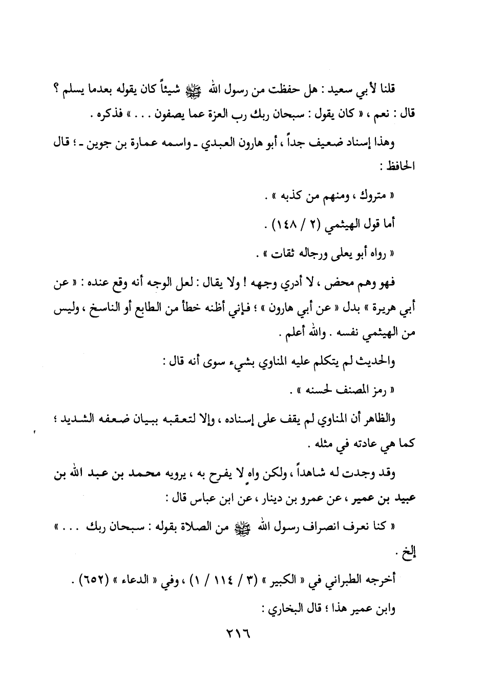 "كنا نعرف انصراف رسول الله - صلى الله عليه وسلم - من الصلاة بقوله: سبحان ربك ... " إلخ.