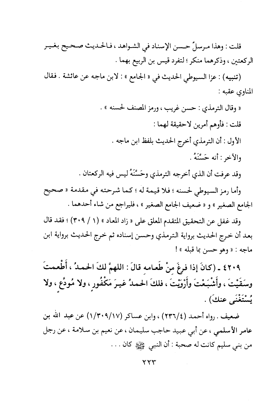 وقد غفل عن التحقيق المتقدم المعلق على "زاد المعاد" (1/ 309) ؛ فقد قال بعد أن خرج الحديث برواية الترمذي وحسن إسناده ثم خرج الحديث برواية ابن ماجه: "وهو حسن بما قبله"!