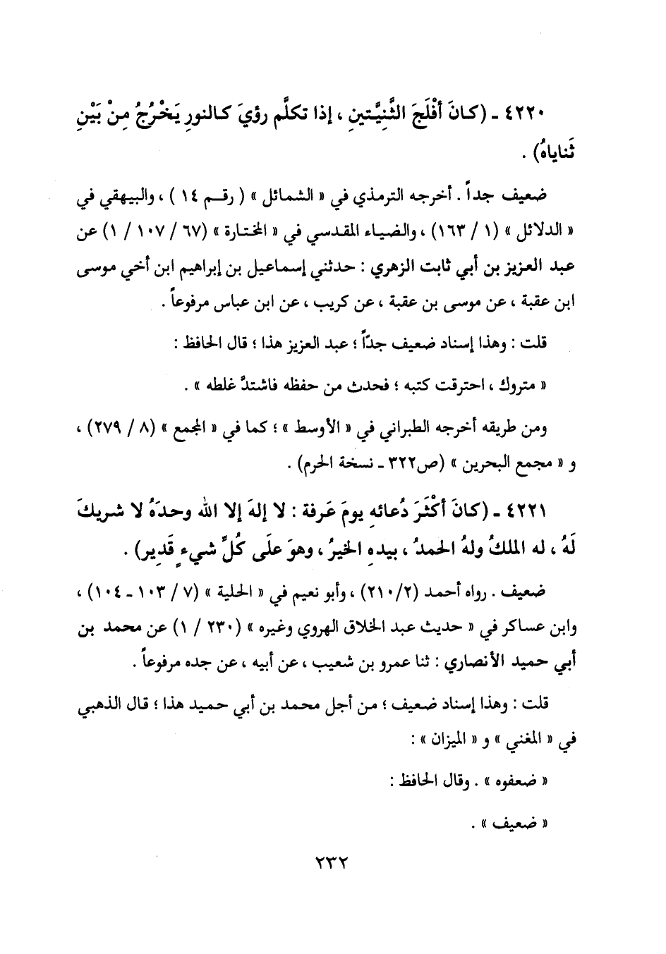 4220 - (كان أفلج الثنيتين، إذا تكلم رؤي كالنور يخرج من بين ثناياه) .
