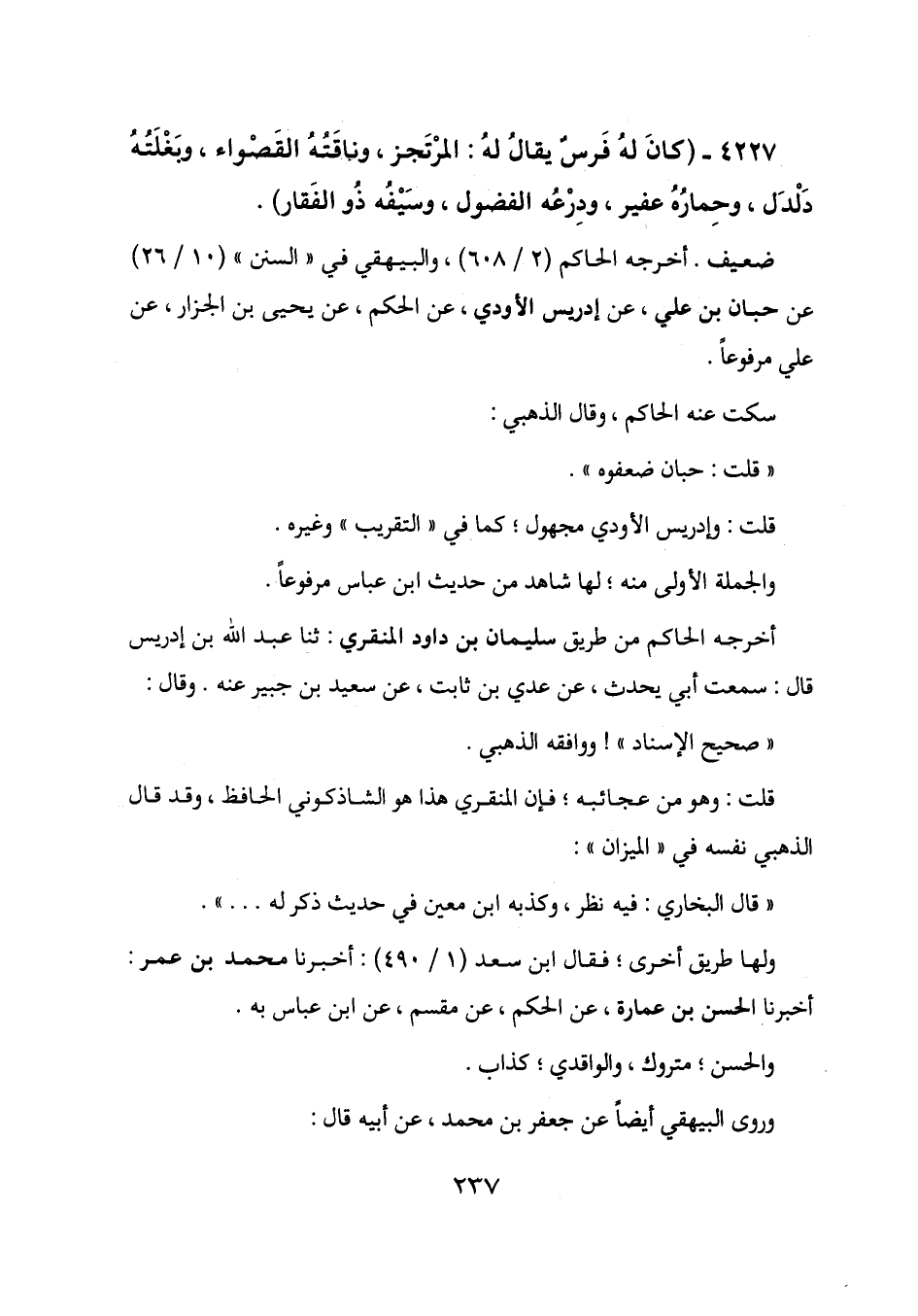 4227 - (كان له فرس يقال له: المرتجز، وناقته القصواء، وبغلته دلدل، وحماره عفير، ودرعه الفضول، وسيفه ذو الفقار) .
