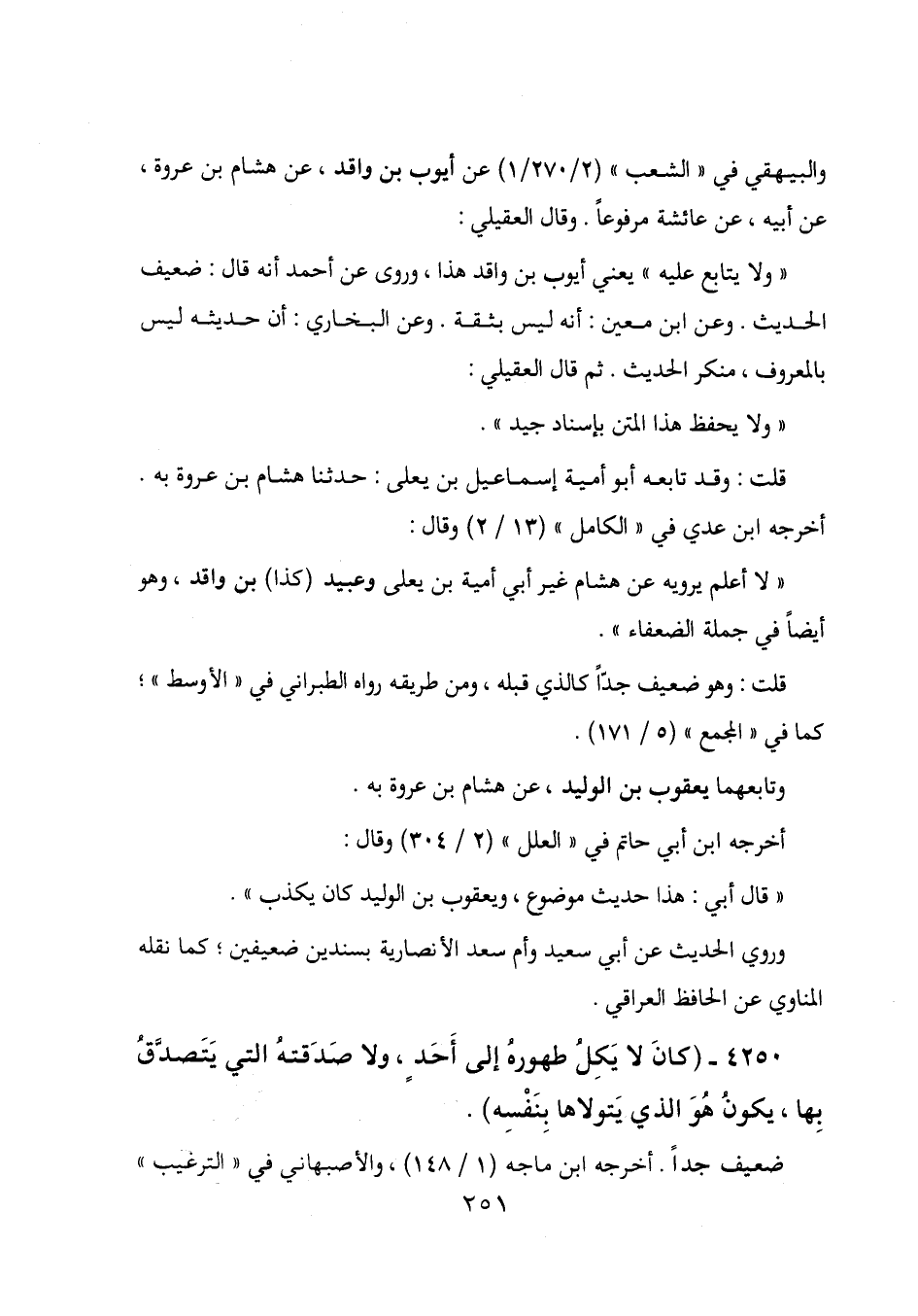 والبيهقي في "الشعب" (2/ 270/ 1) عن أيوب بن واقد، عن هشام بن عروة، عن أبيه، عن عائشة مرفوعاً. وقال العقيلي: